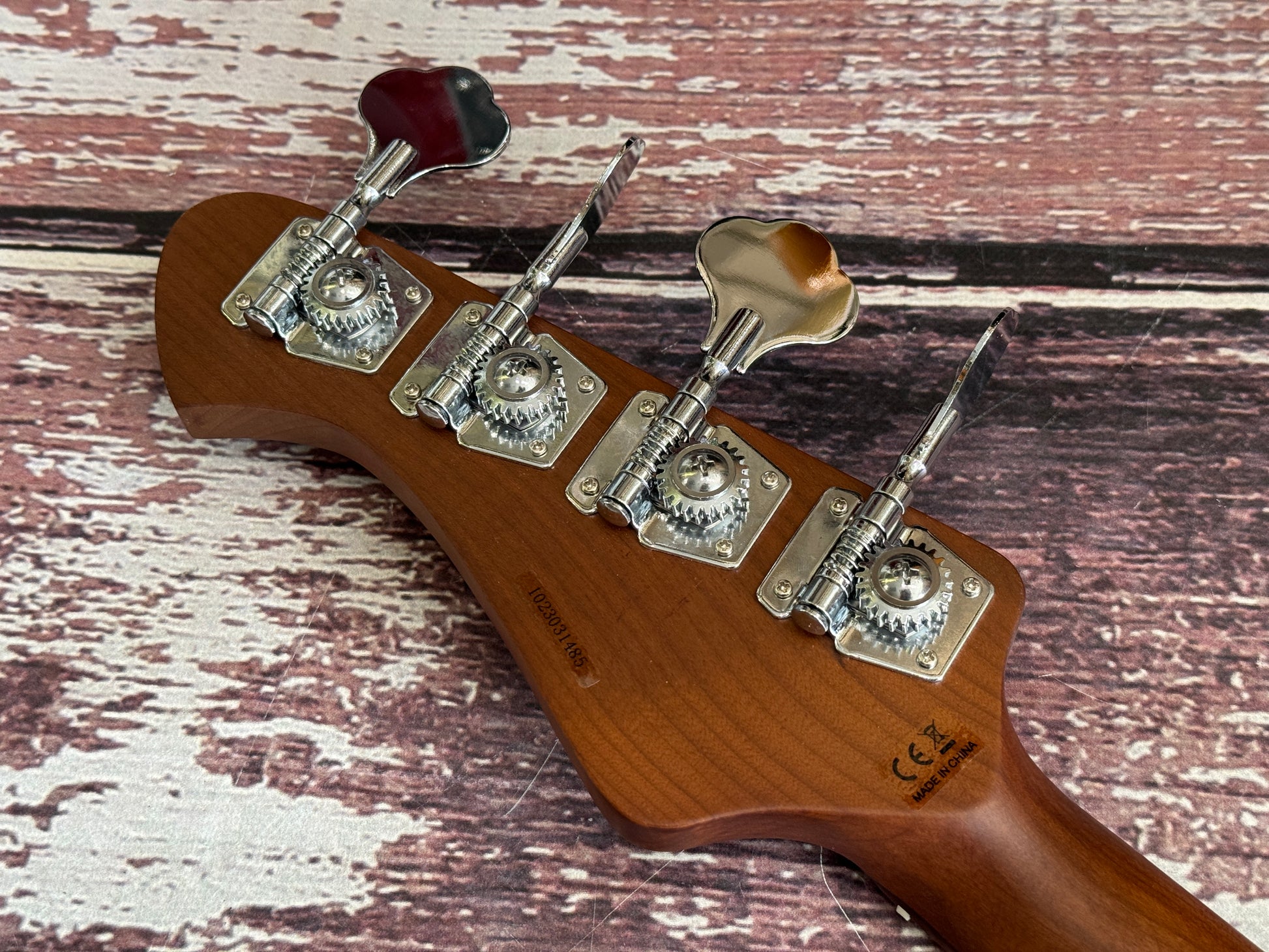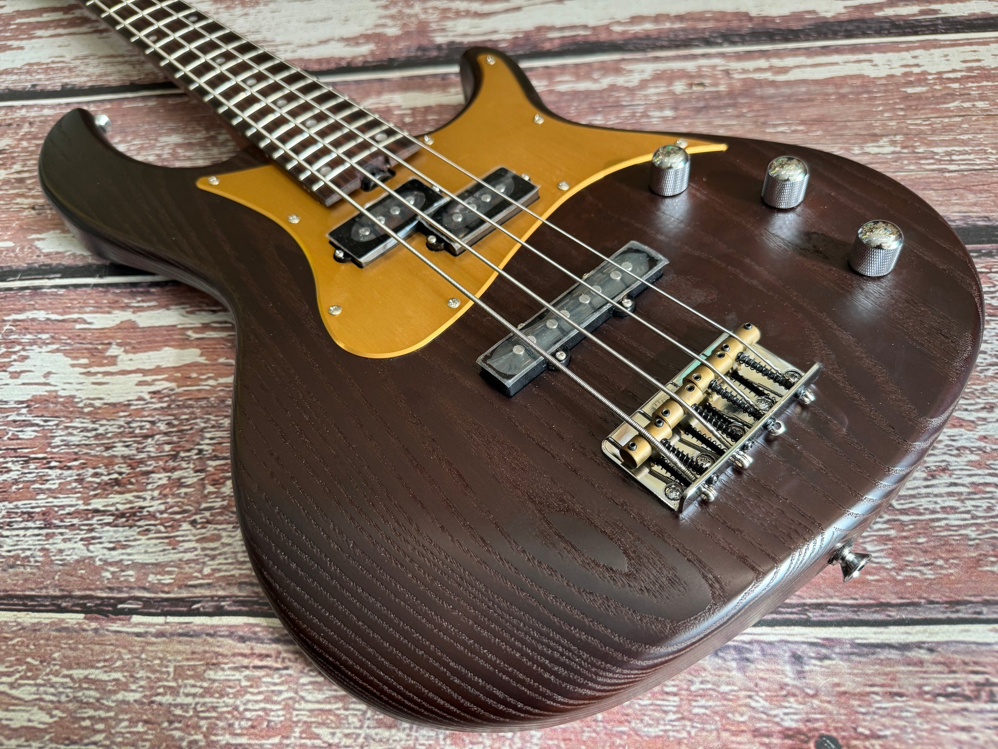 This model combines both P and J style pickups for a wide tonal range, the extended top horn balances the bass perfectly on a strap and the looks are also very impressive with the open pore ash body and roasted maple neck.