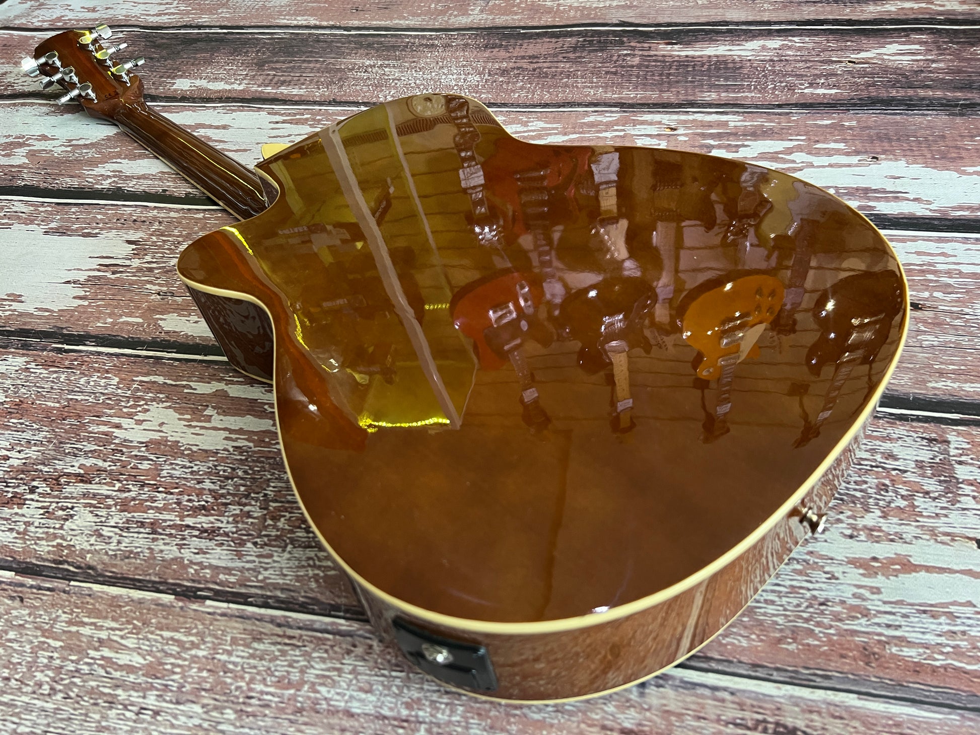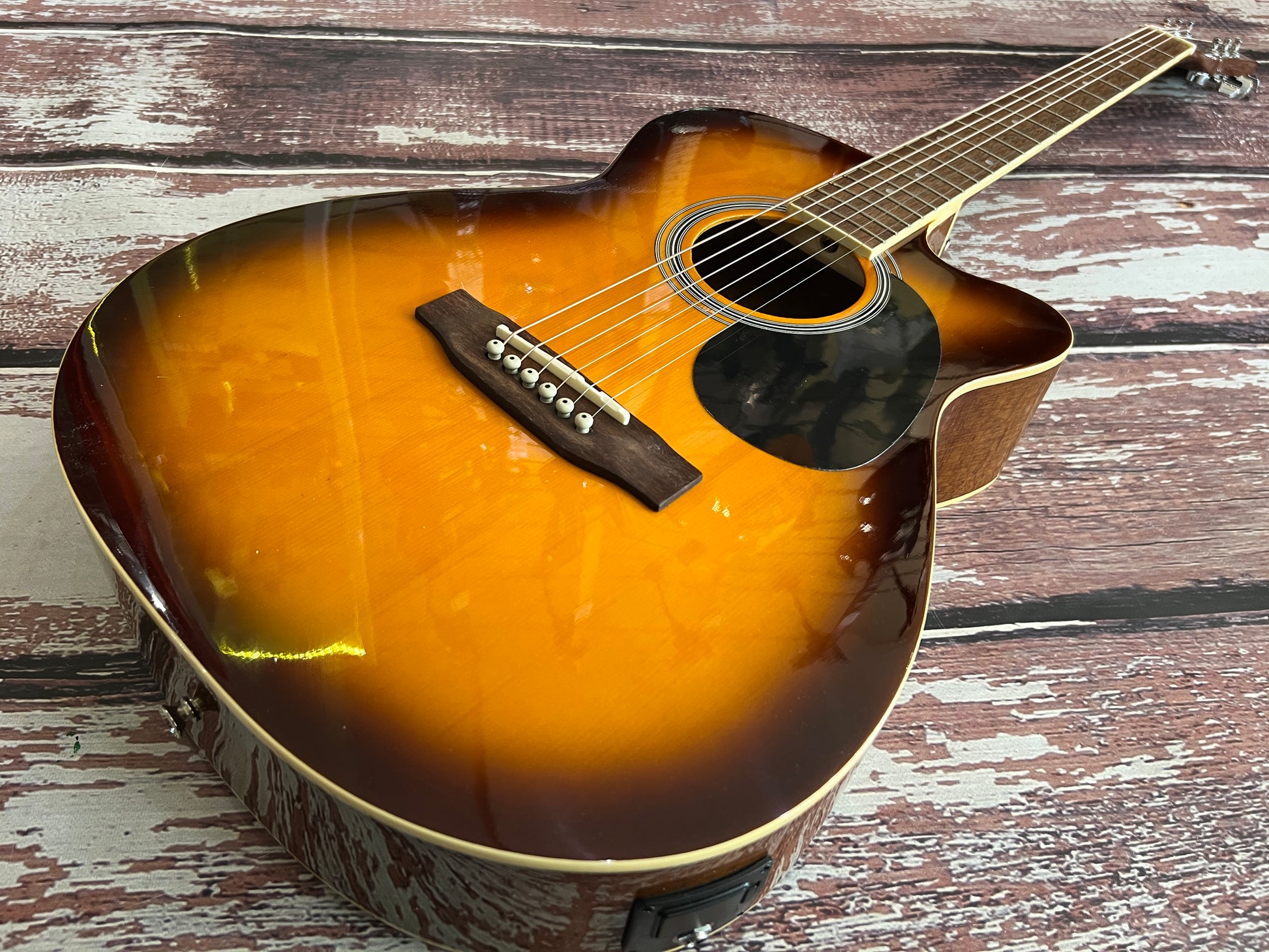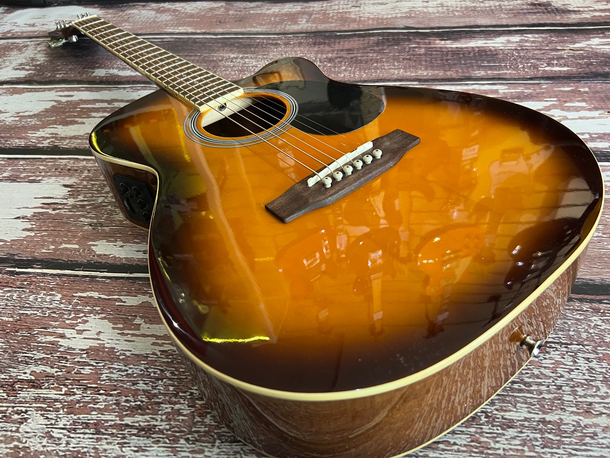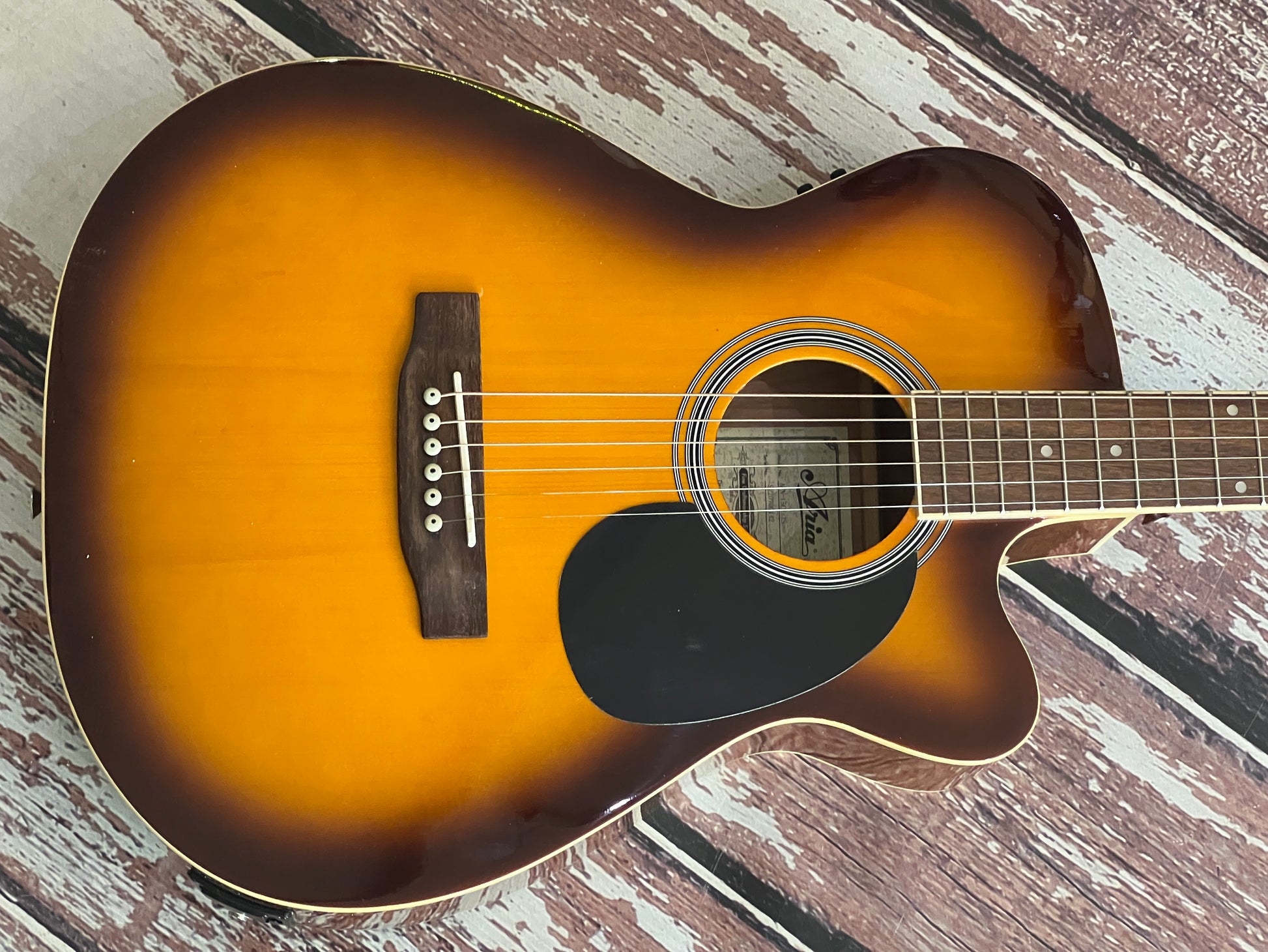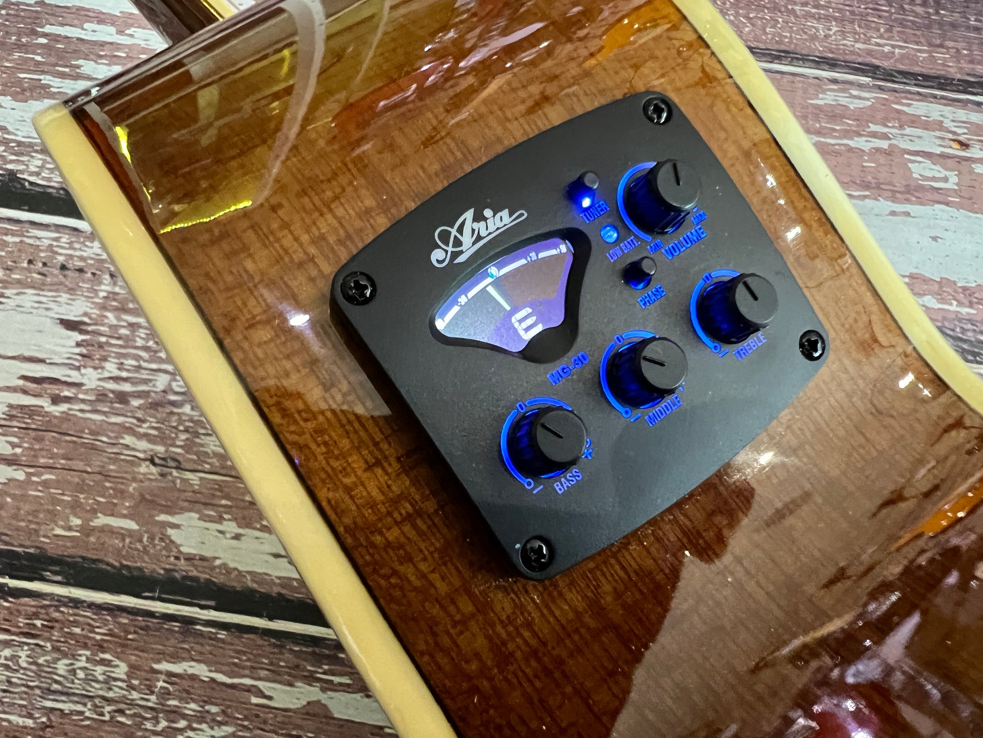 This compact body Aria is a perfect easy to play, light electro acoustic for a starter, clean jangly tones and a great action make it very well suited to start your journey into the world of guitar playing!