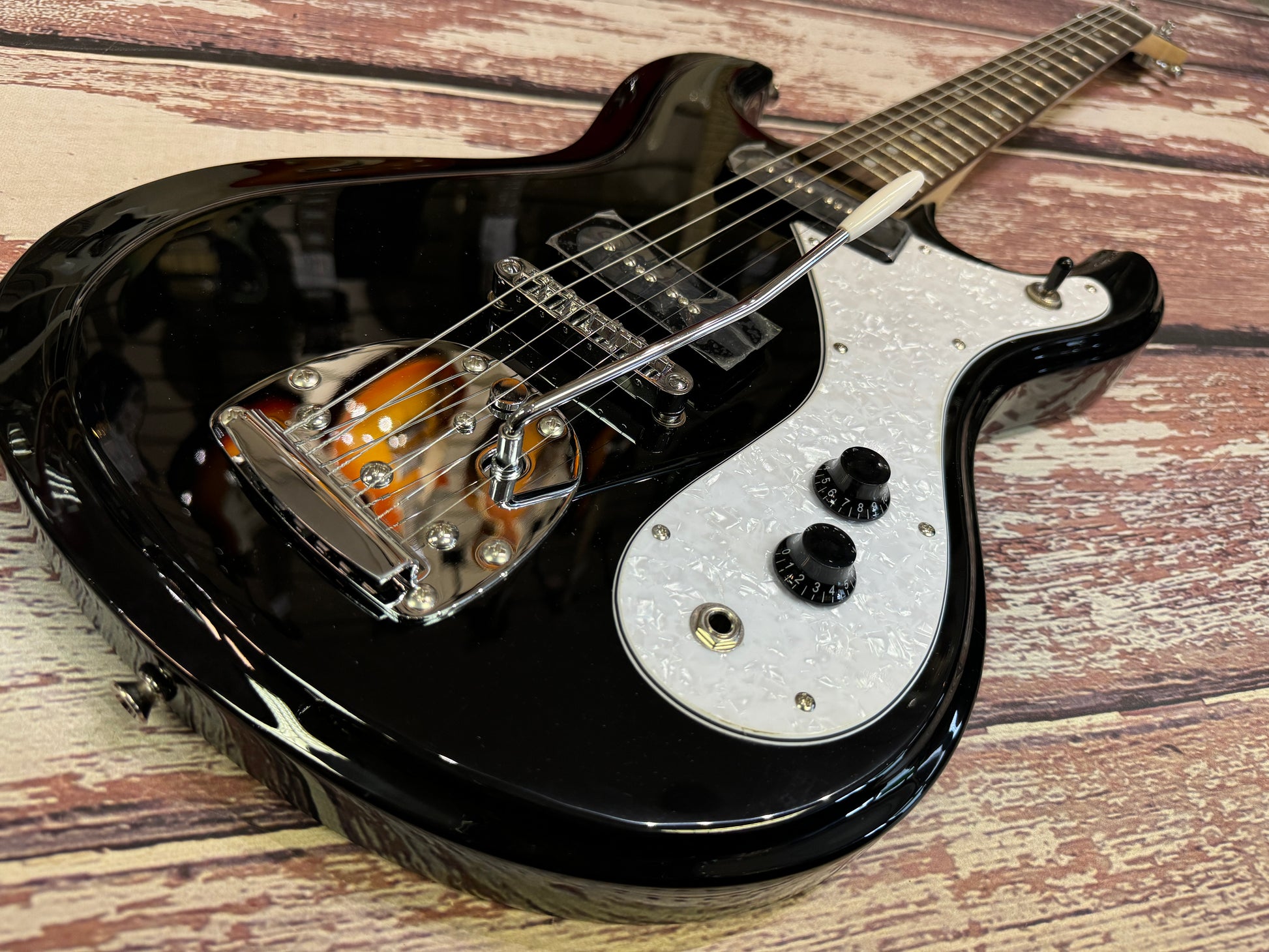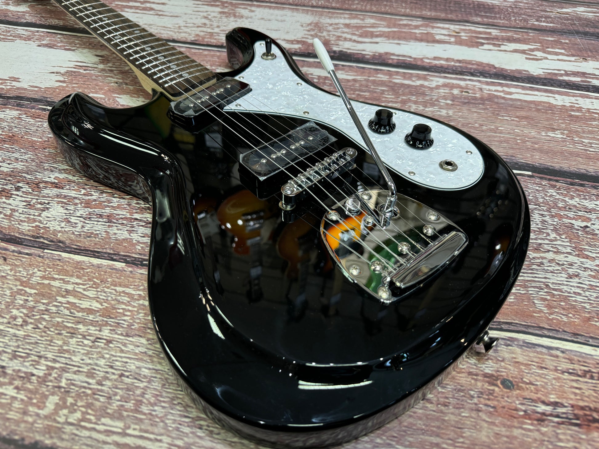 Part of the Retro Classic series, the DM-01 features a basswood body, maple neck, and Techwood fingerboard. The 25.5″ scale length guitar also holds 20 frets alongside chrome hardware, a tune-o-matic bridge, and floating, Jazzmaster-style tremolo system.