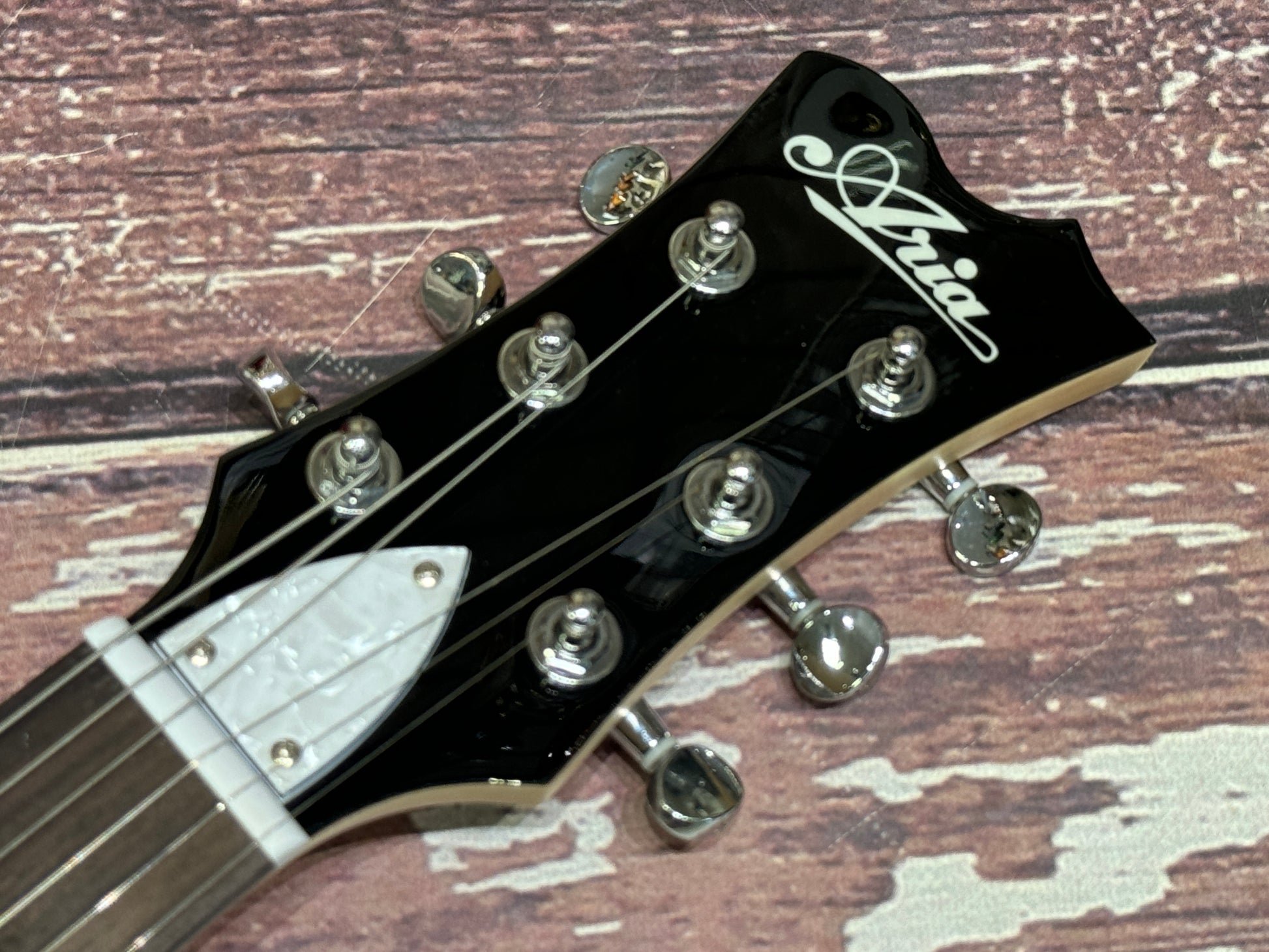 Dual APS-9 single coils, Aria’s take on P90’s, give the guitar a distinctly killer look and tone. The two soapbars are controlled via a standard 3-way selector switch as well as a volume and tone knob.