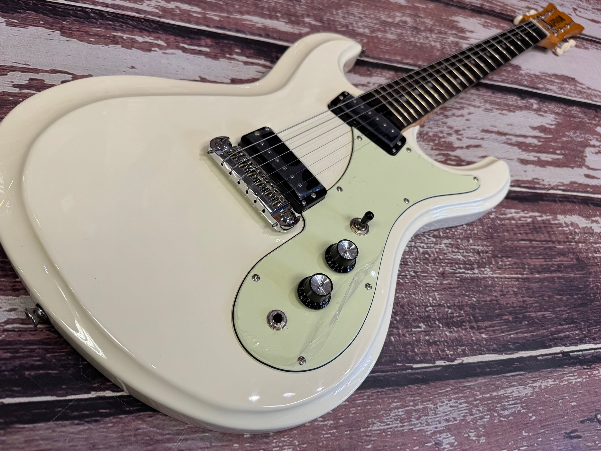 Today new DM was born as DM-206 which fully inherits the heritage and tradition of original DM offered. However the spec of DM-206 doesn’t correspond to any of vintage DM guitars but with updated specifications to suit modern guitarists’ needs. The combination of 2 Mini-Humbucker Pickups with Wrap round bridge is just ideal for you to rock around.