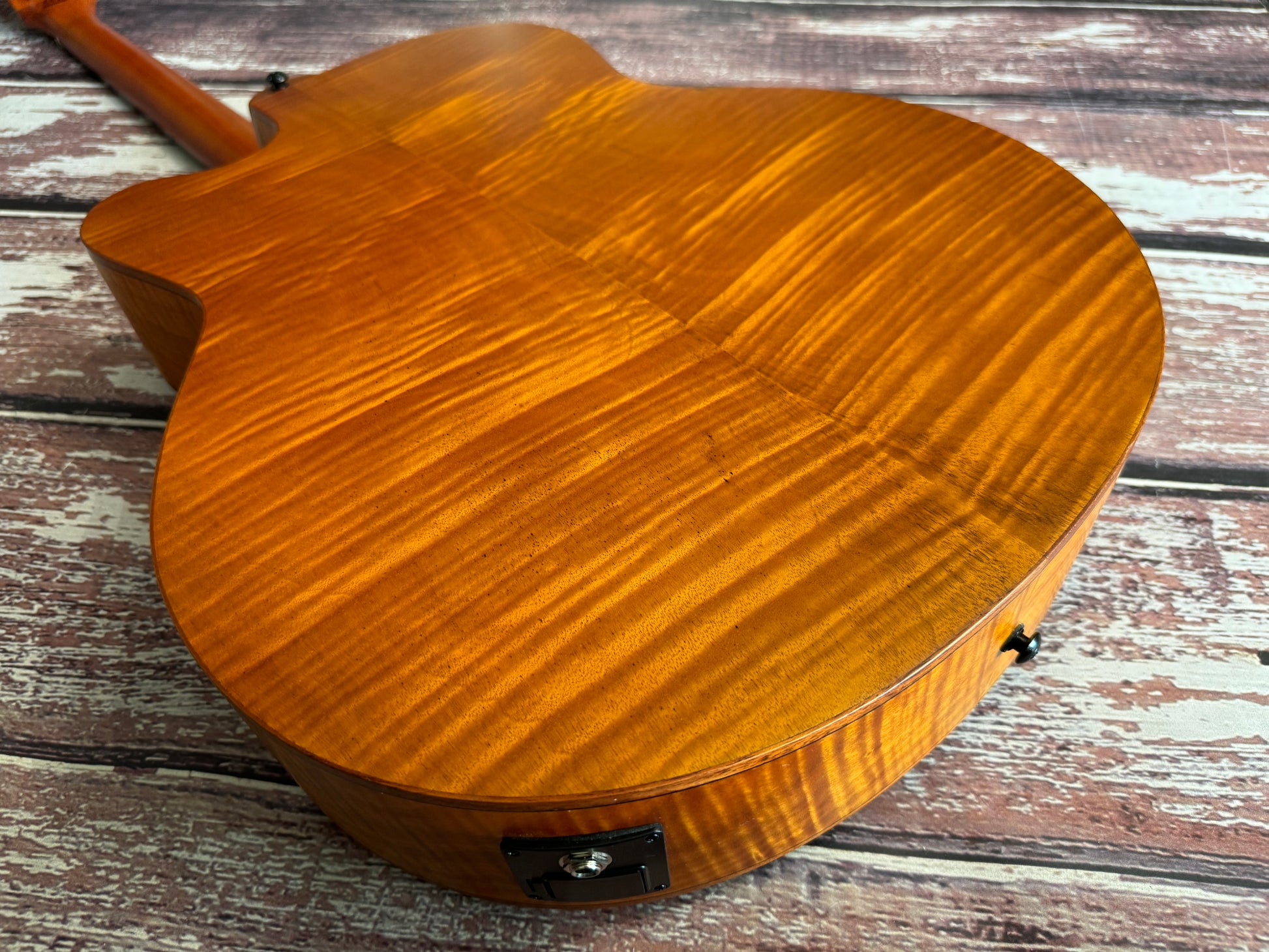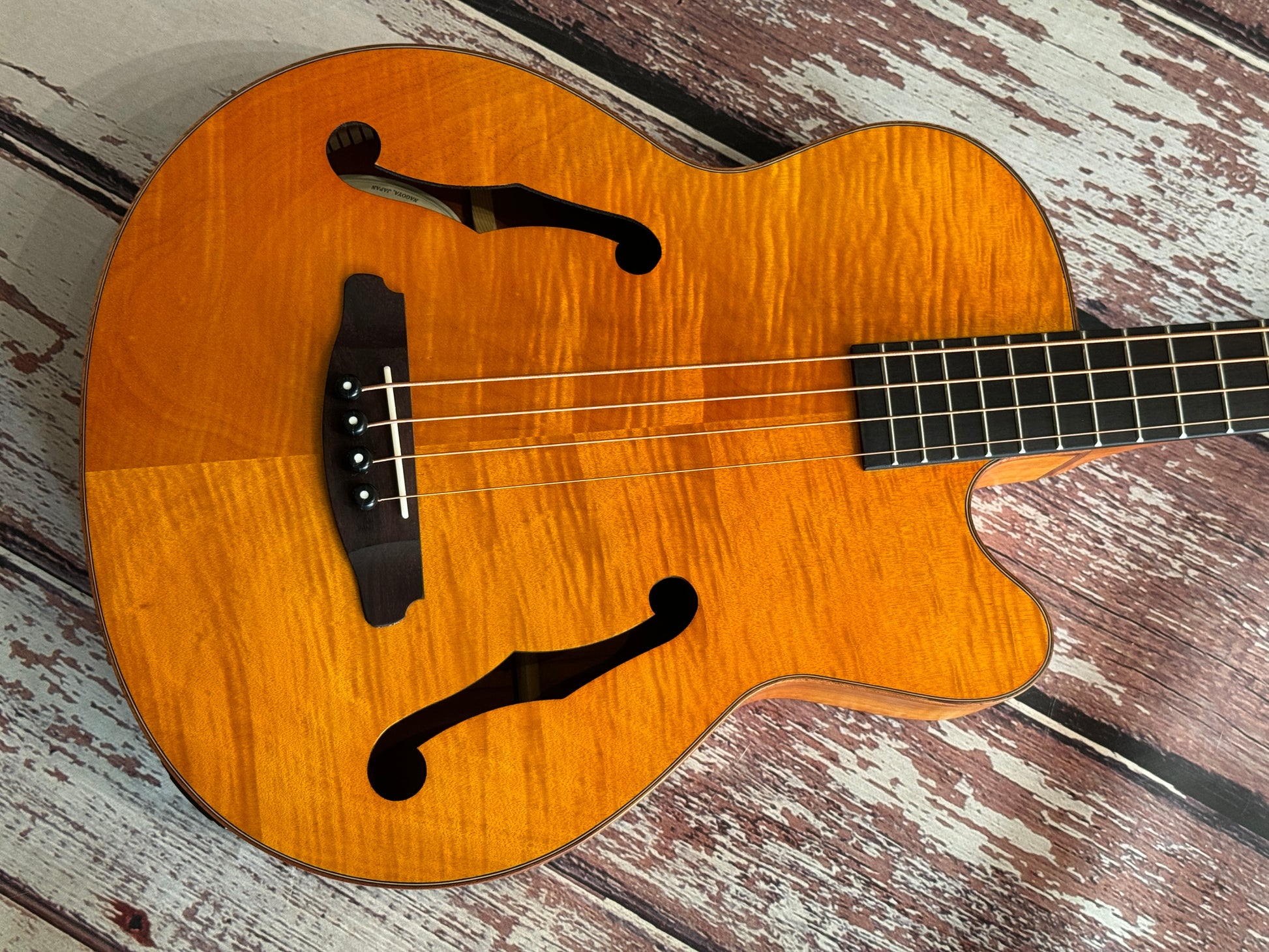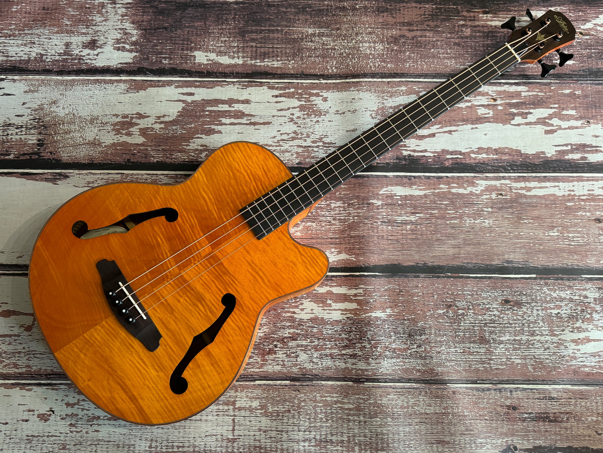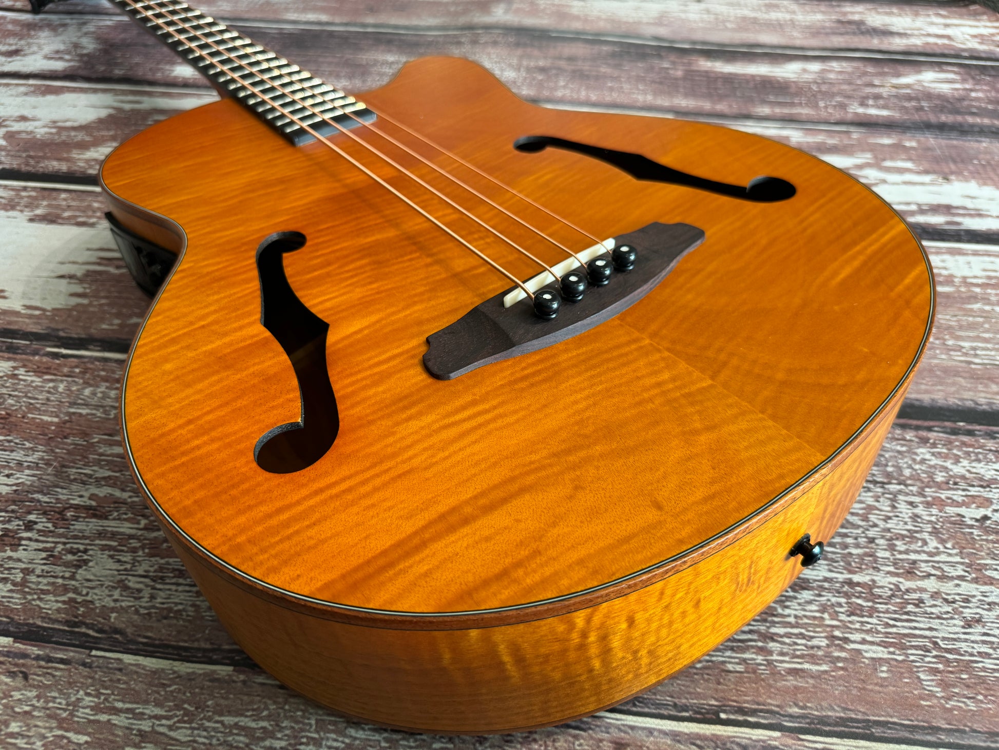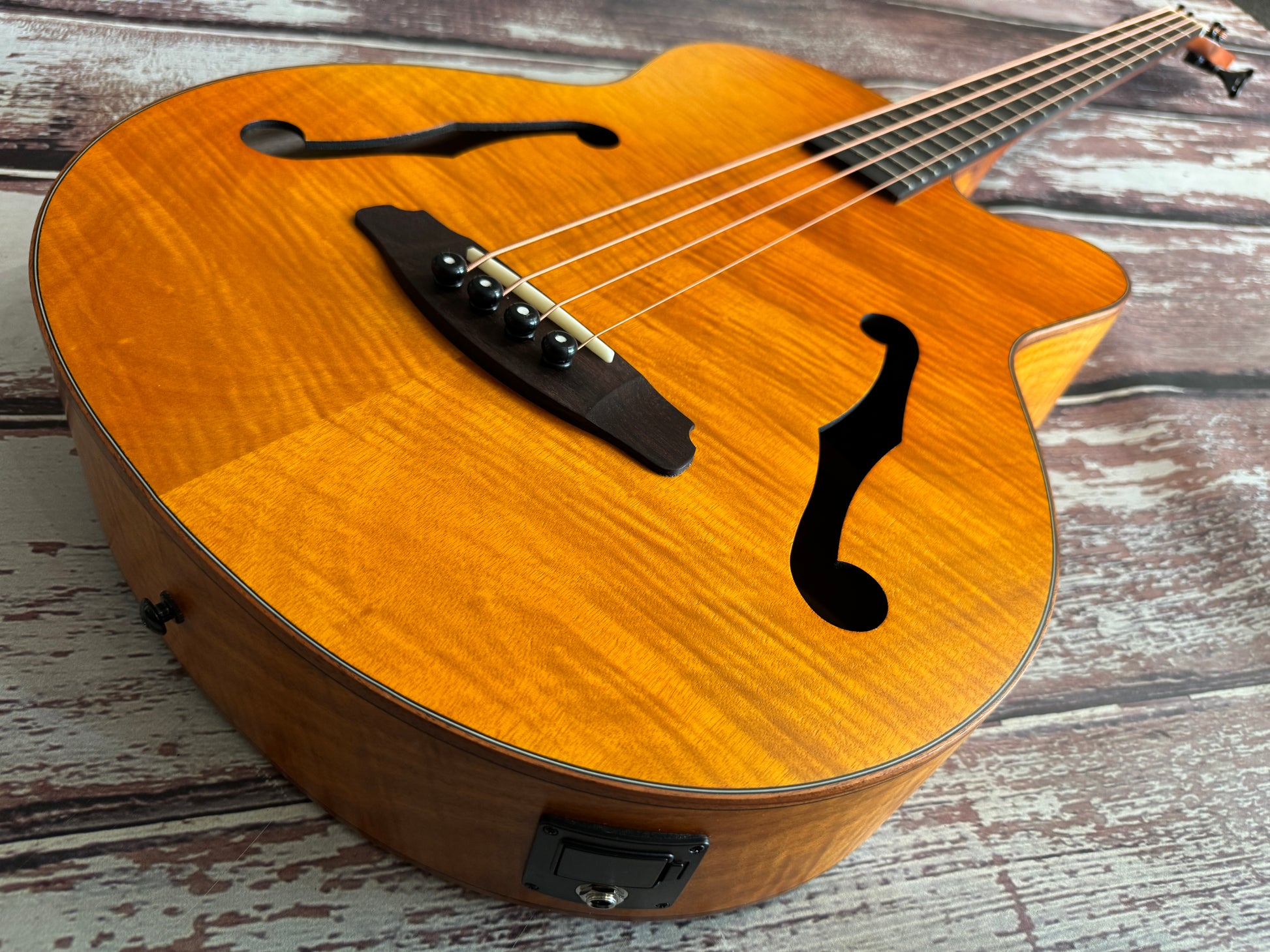 Constructed with a flame nato body, the guitar possesses a fantastic natural tone that perfectly ensures coverage over every frequency, issuing a defined low-end, balanced mid-range, and resonant highs. The f-holes on the instrument's body provides impeccable projection allowing you to utilise the bass both acoustically and with the aid of an amplifier. A single cutaway allows for easy access to the higher ranges.