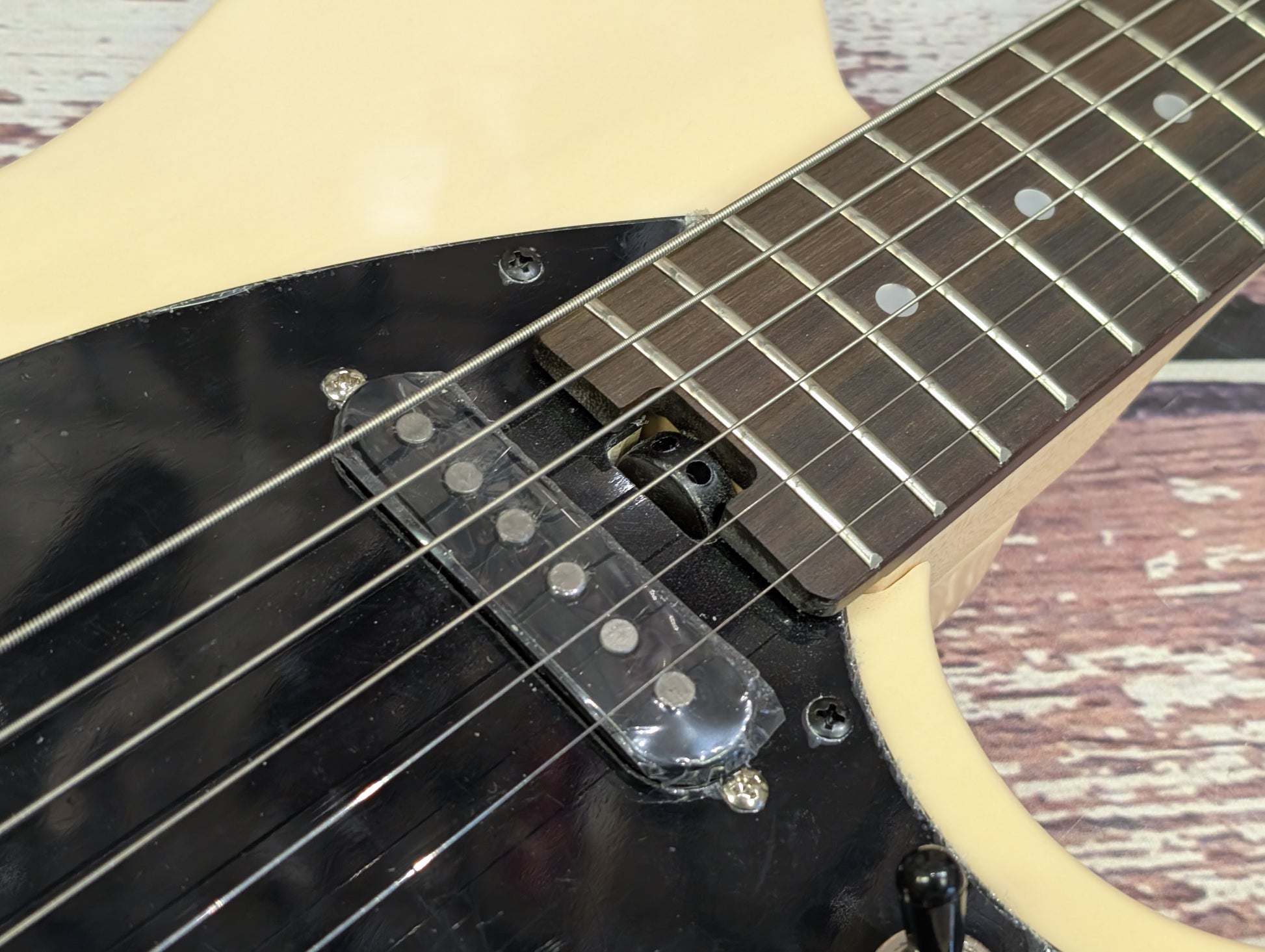 Is it a bass? Is it a guitar? Is it some third thing?! Well, that's for you to decide. This Aria Jet Baritone has a mighty 30" scale length - longer than your standard baritone - making it more akin to a Fender Bass VI. With the right strings on here, you could tune it down to bass tuning, although it comes stock with strings for B Standard tuning. If you're a heavy player, and want to plumb new depths of tone, then this could be your new secret weapon. Even if you're not a heavy player, then the timbre of a baritone is such a fun asset to have in your collection. With the combination of a humbucker and single coil, there's some great tonal option that isn't just thick and rocky - there's some twang to be had in the neck position that'd be a brilliant layer in recording.