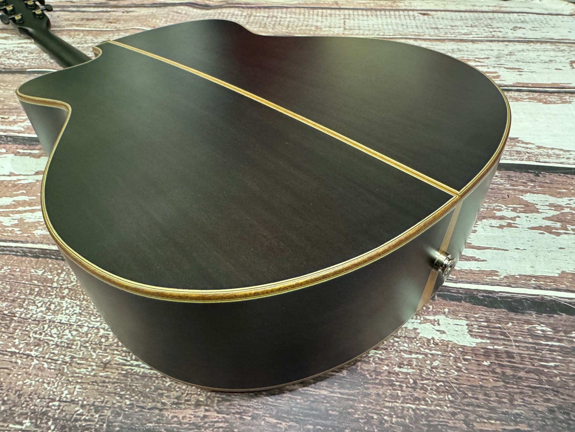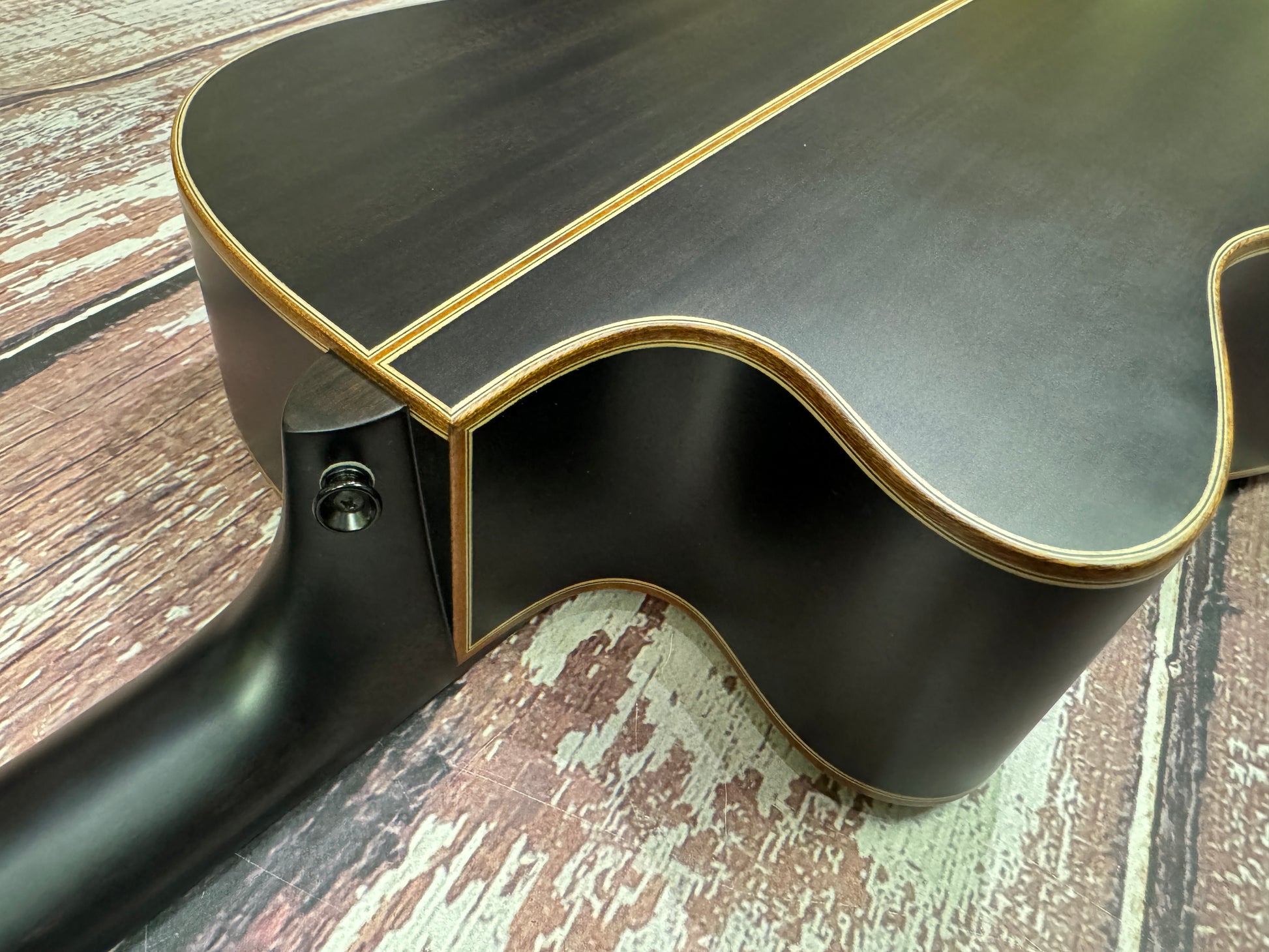 The combination of Mahogany and Spruce gives a warm but clearly defined tone. This guitar is a great all-rounder and responds beautifully whether finger-picked or strummed. It boasts a good string low end combined with balanced clarity and projection.