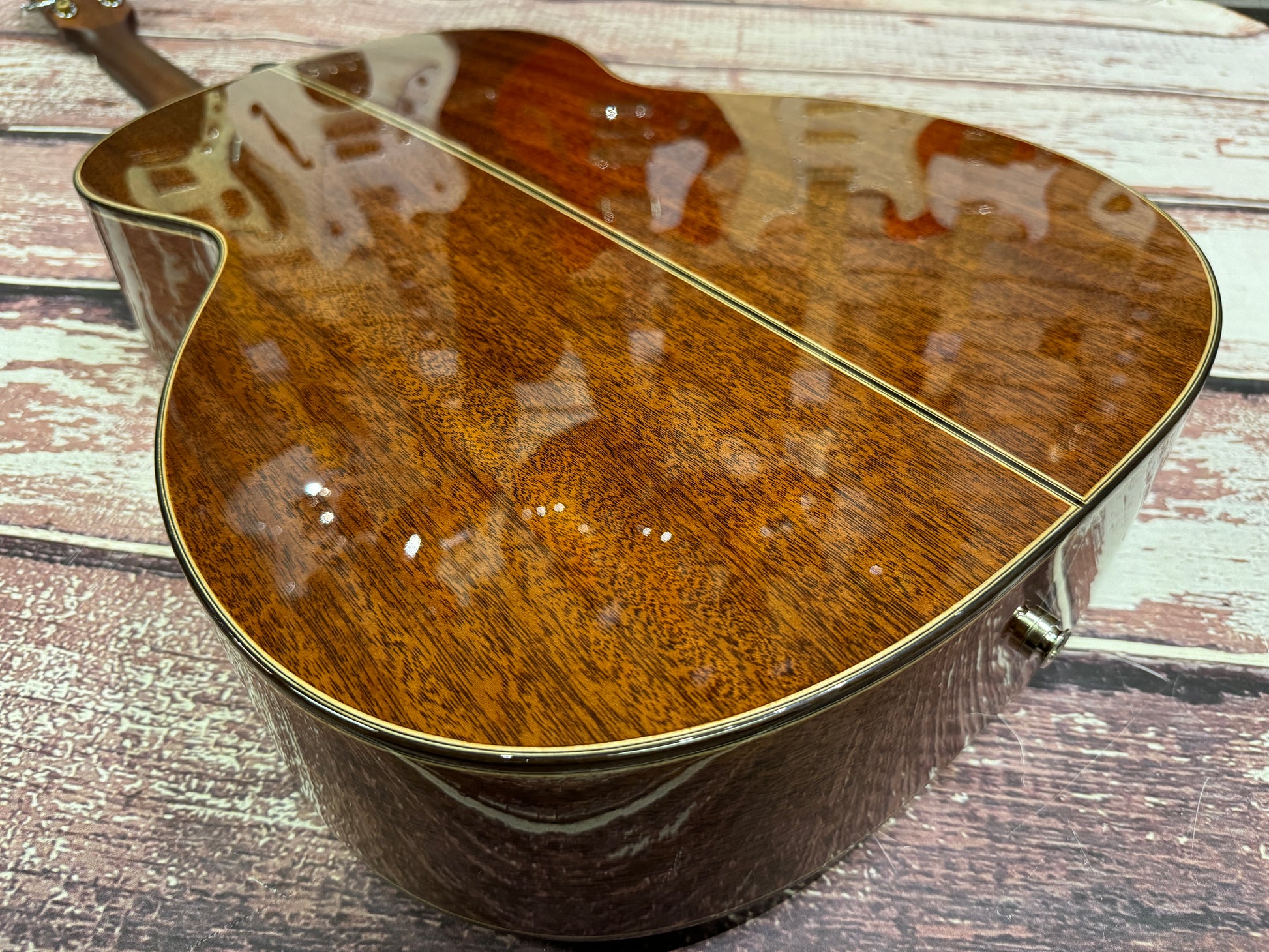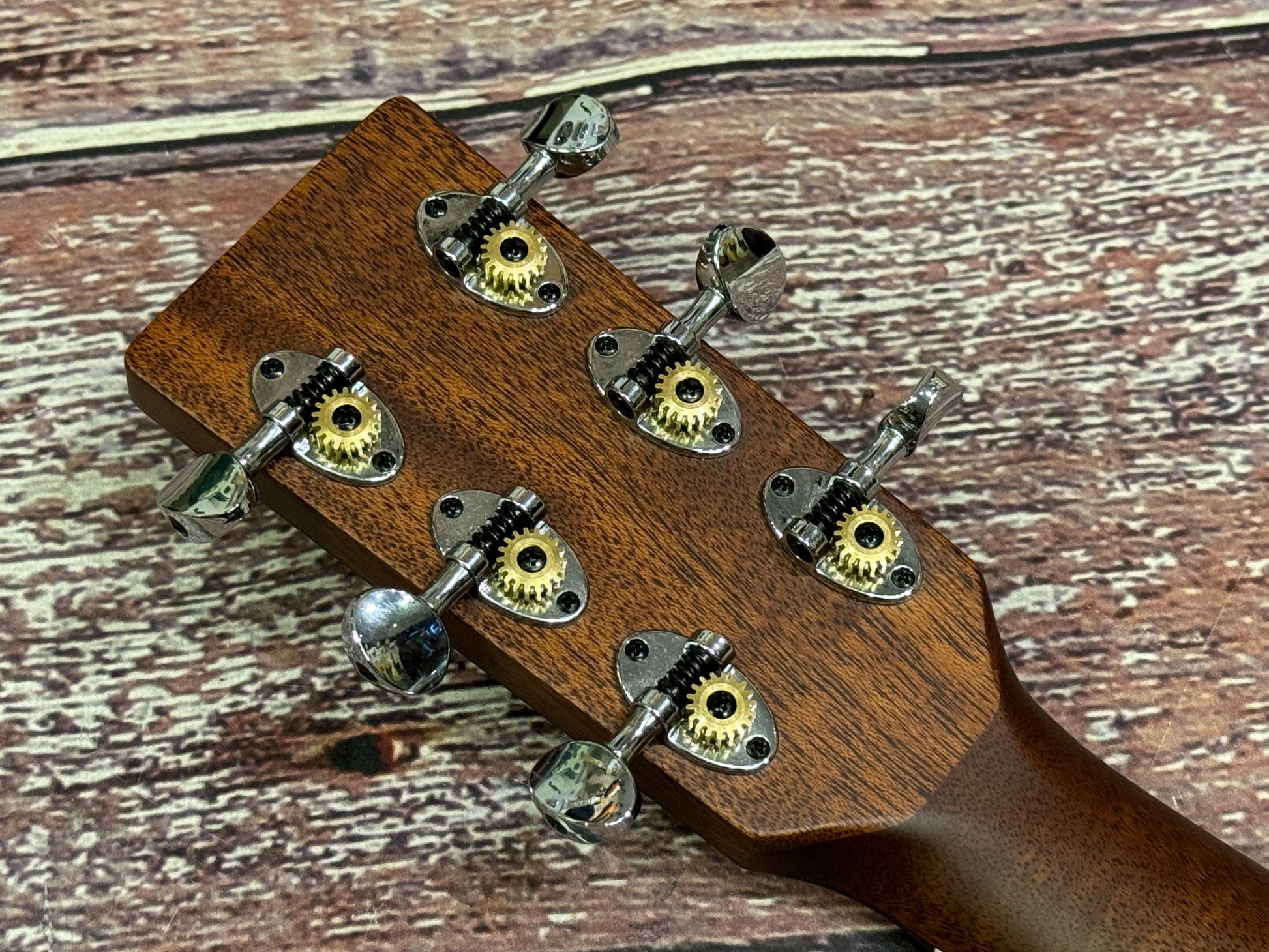 Auden have combined a solid mahogany top with solid Indian rosewood back and sides in this mighty 000 size electro, it has the classic warmth of the mahogany aided by the rosewood to give power and projection.