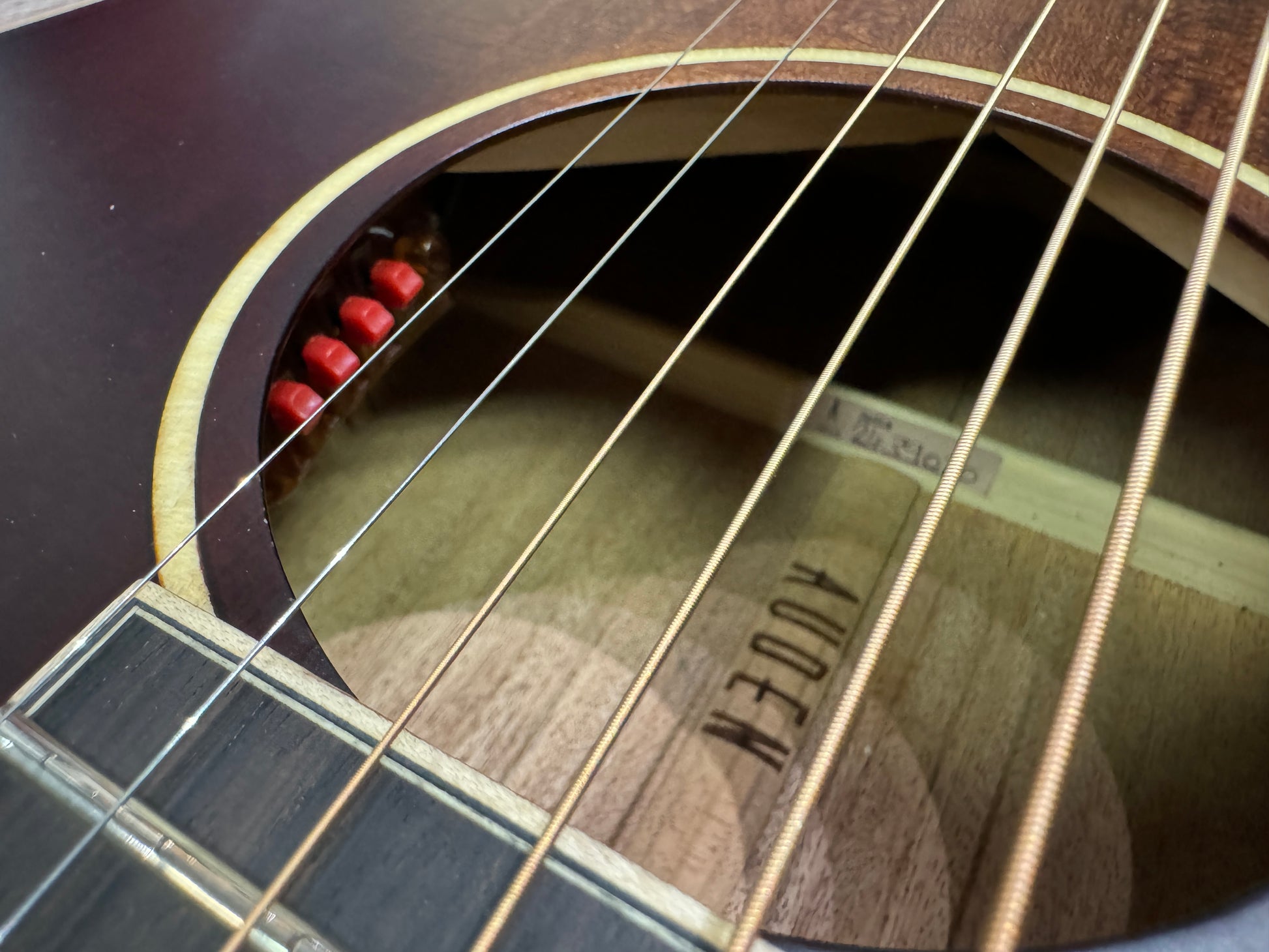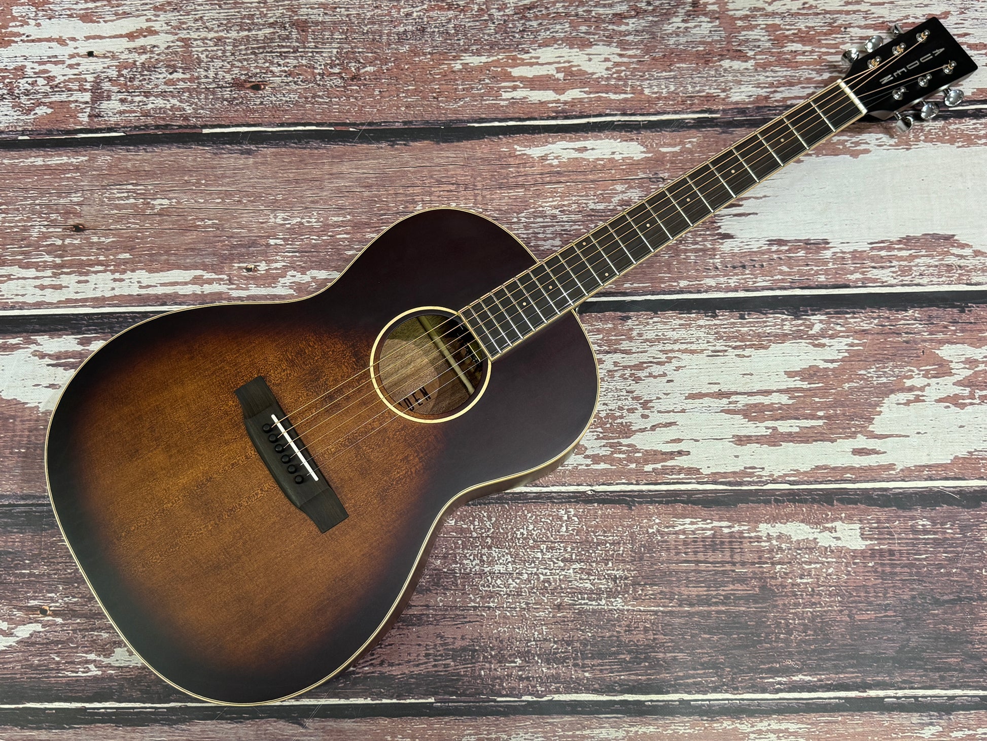 The open pore satin finish using minimal lacquer allows this guitar to sing and reverberate with a sound that’s much larger than its small body. A great songwriter’s guitar.
