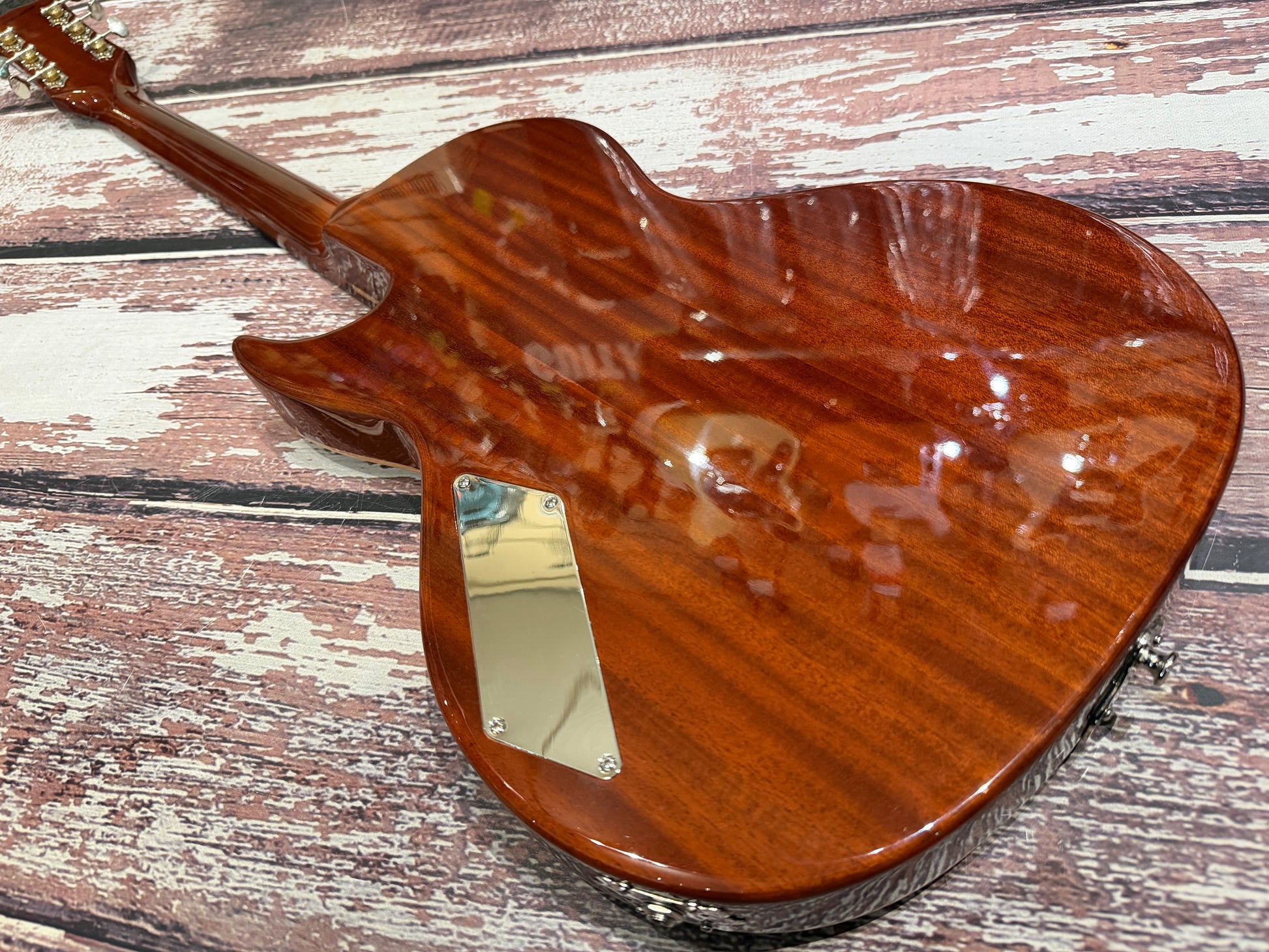 The Crossroads series is built from top quality solid tone-woods: African mahogany body and neck, katalox fingerboard, and solid maple top. Factory-made brass hardware maintains the familiar look and the closest possible tonal qualities to our original prototype.