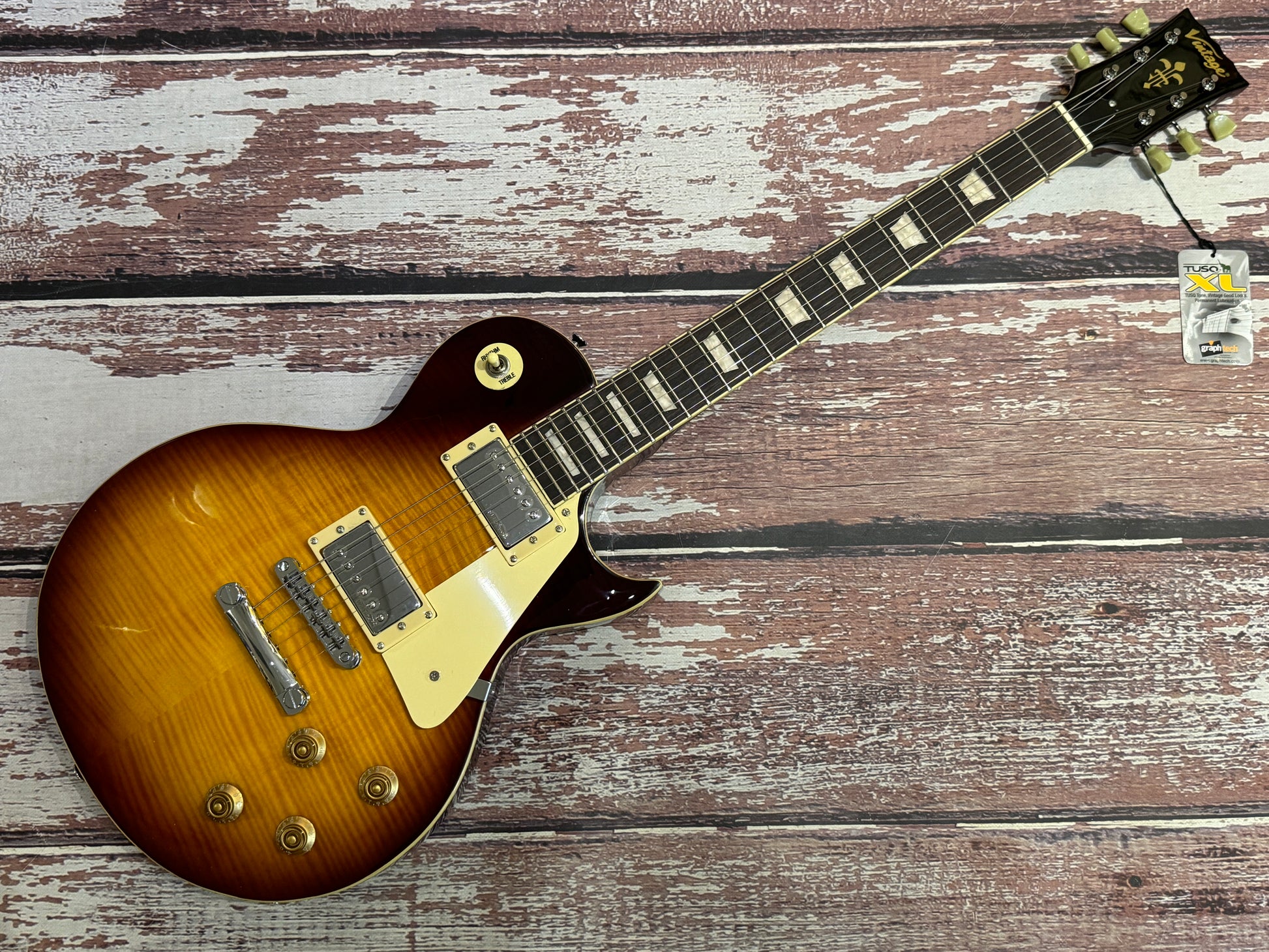 Two piece centre jointed mahogany body, with carved solid maple cap and bookmatched flame maple veneer provides resonance, tone and ‘correct weight’ comfort. The Vintage V100IT features a unique, evolutionary body shape, with a graceful descending bass side shoulder and an ingeniously-designed offset heel providing improved access to the upper reaches of the fretboard.