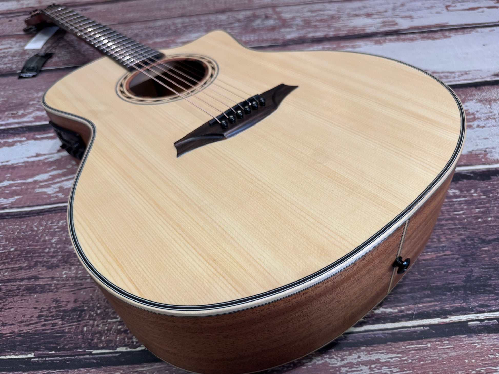 You get a solid spruce top, great electrics with tuner, incredible attention to detail and finishing all over the guitar, just look closely at the inlays, binding, rosette, headstock and heel detail. This is usually something you will see on a premium end instrument.