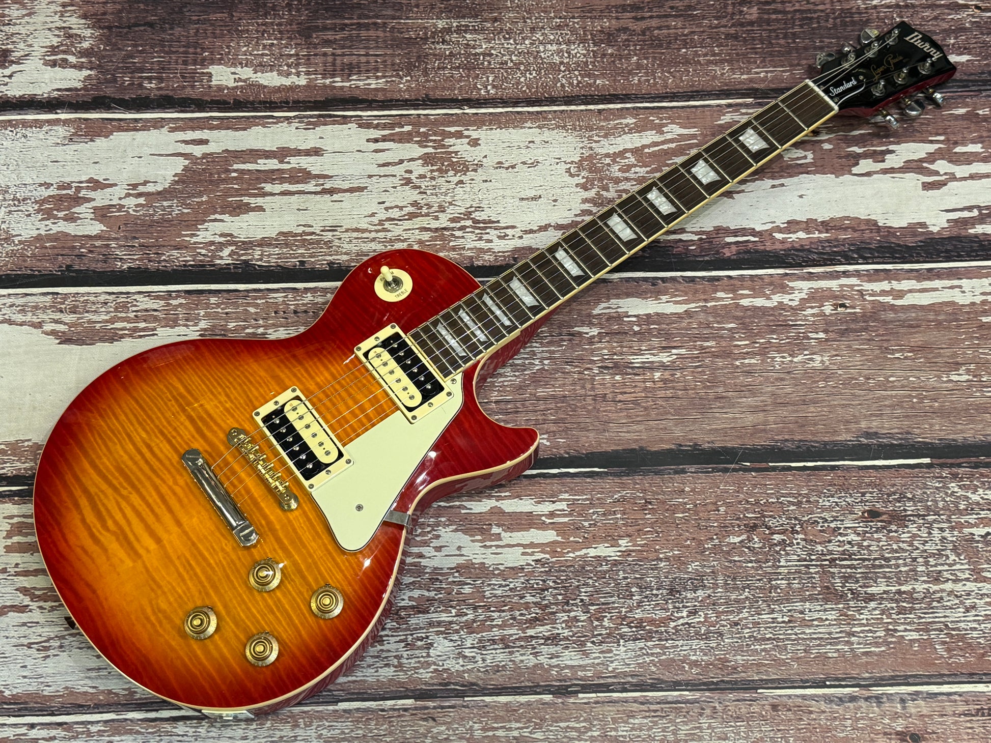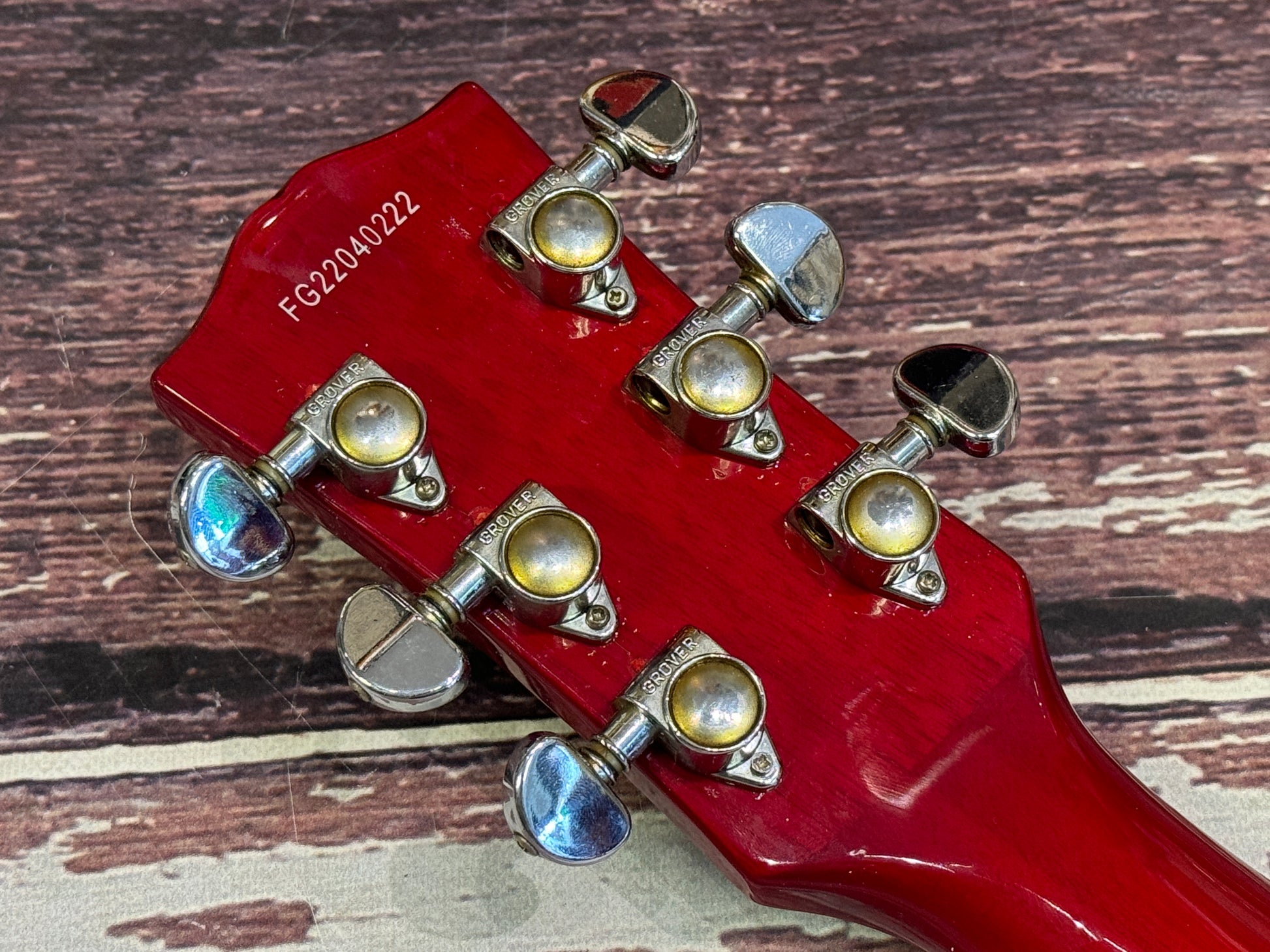 This one has had an upgraded set of Grover tuners fitted, a new graphtec nut has been custom fitted and a rather nice gold tune-o-matic bridge, matching in nicely with the control knobs.
