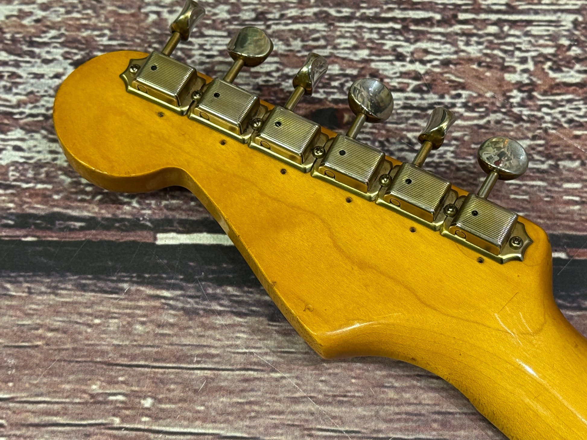 This started life as a late 70s Cimar Strat, made in Japan. Cimar were a Hoshino Gakki produced instrument, and were associated with the early Ibanez models.