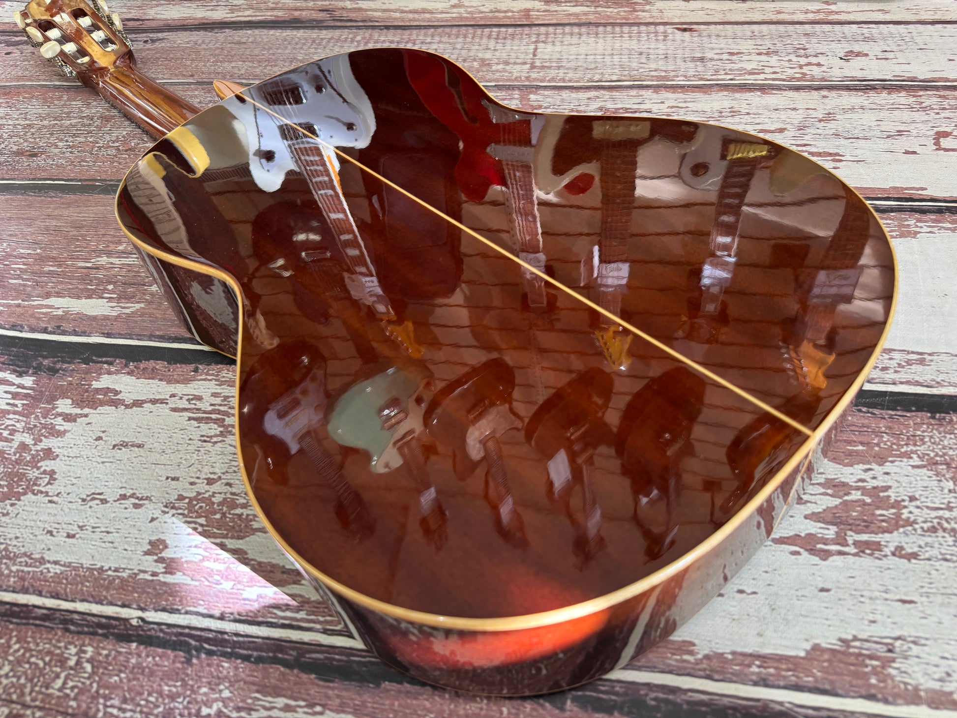 This classical has no branding/name visible, but it is a good build and a perfect starter or intermediate guitar, it has aged beautifully and deserves a new life.
