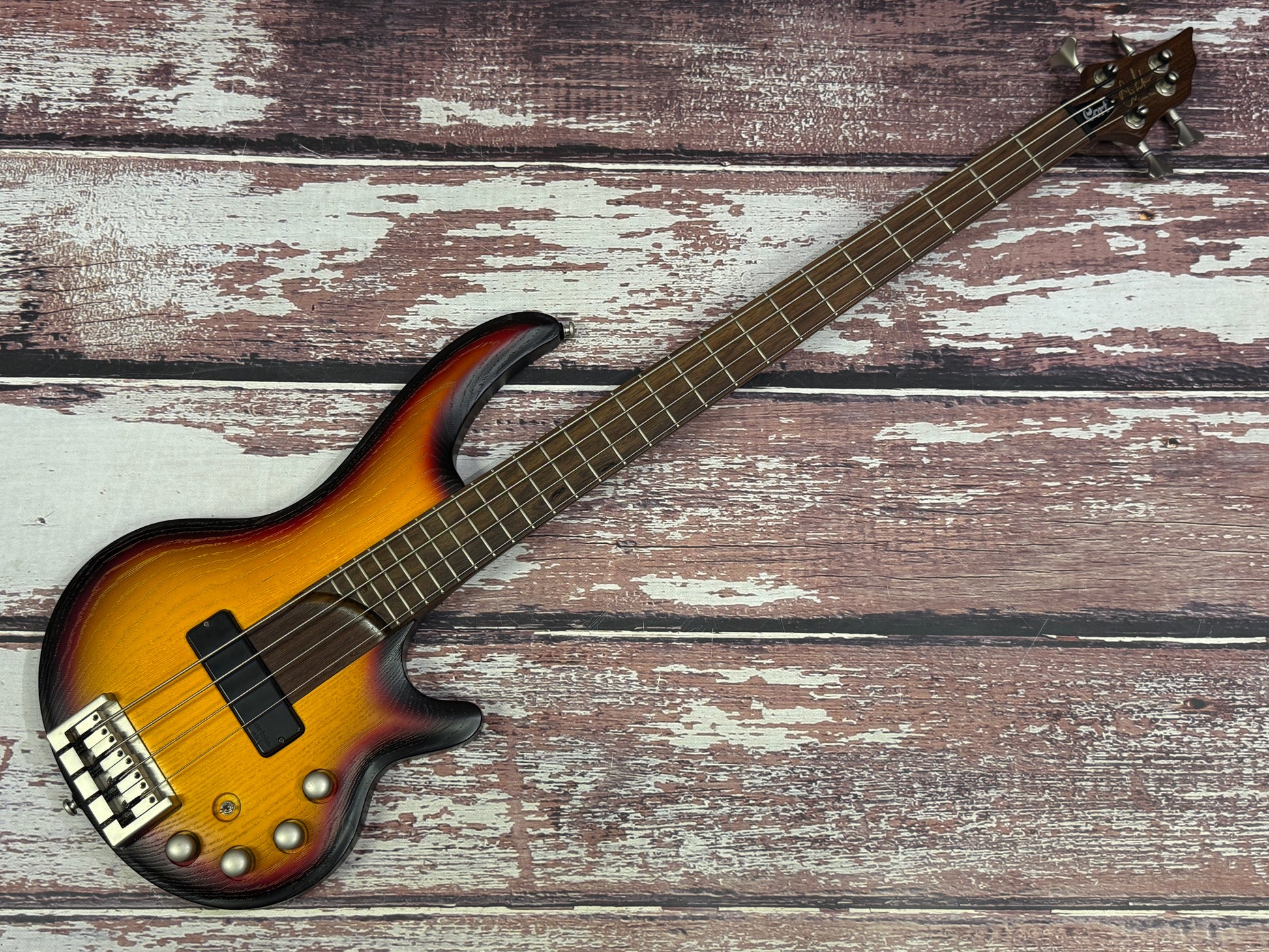 The ultimate pop & slap machine? This is the fabulous "Curbow" from Cort, a single active Bartolini pickup, running through a 3 band active system with the extended fret board and cutaway specifically for slap styles.