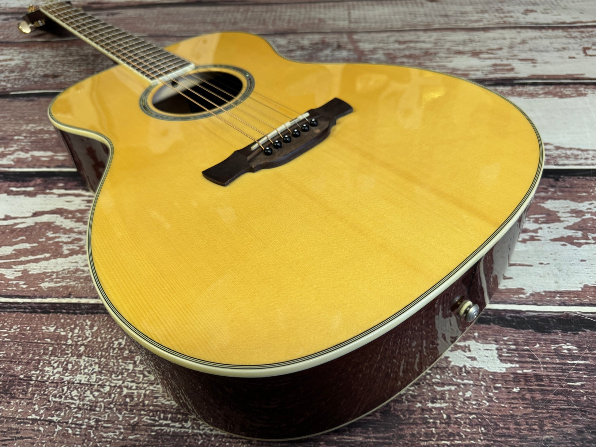 Now discontinued, this is one of the last Crafters from the higher spec "T" range, you have a lovely solid cedar top with rosewood back and sides, gold tuners and snowdrop inlays.