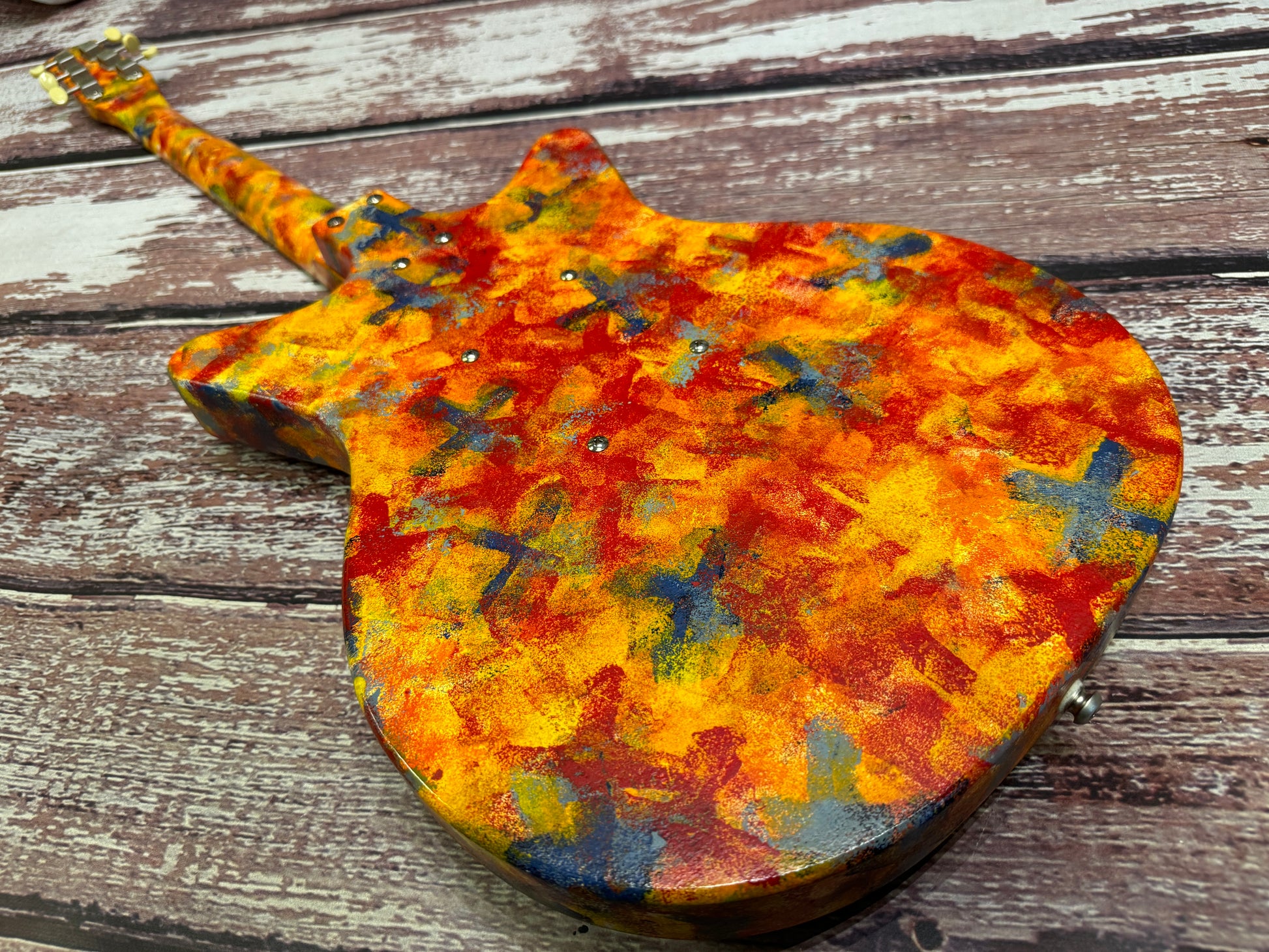 In conclusion, this is a 2009 Danelectro DC59-PSY, sometimes called the "Clapton" edition. Several variations took place during the production run. They are all individually hand painted.