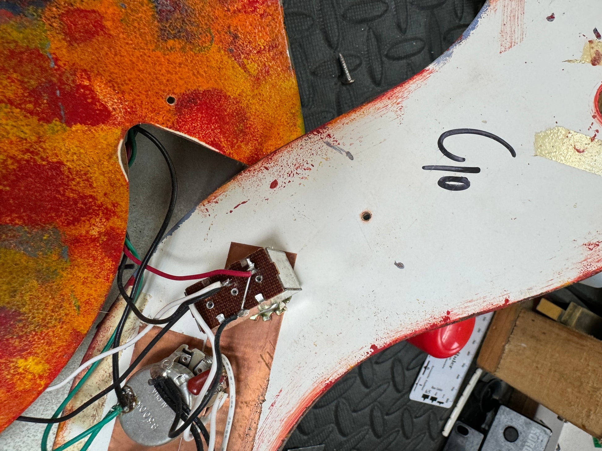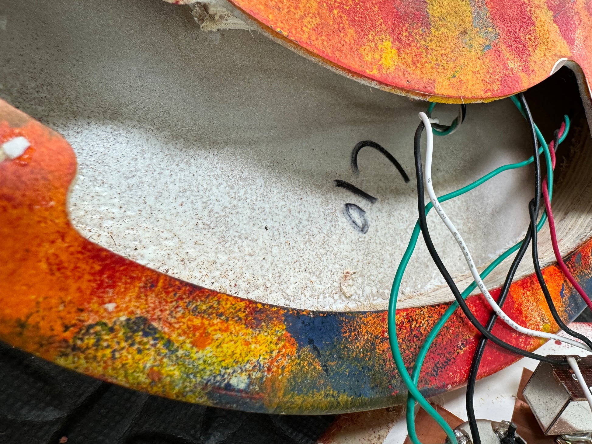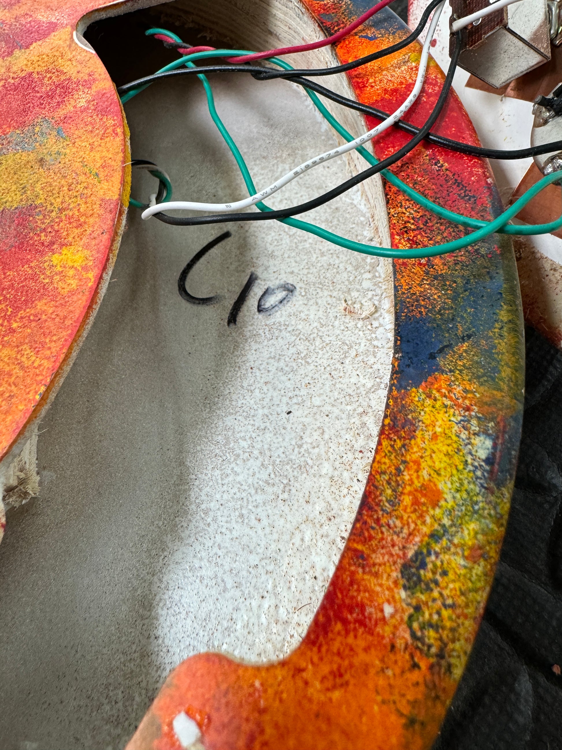 If you scroll through the pictures you will see the production number written on the neck pocket, scratchplate and inside the body. This reads C10, which would point to signifying the 10th made out of 200.