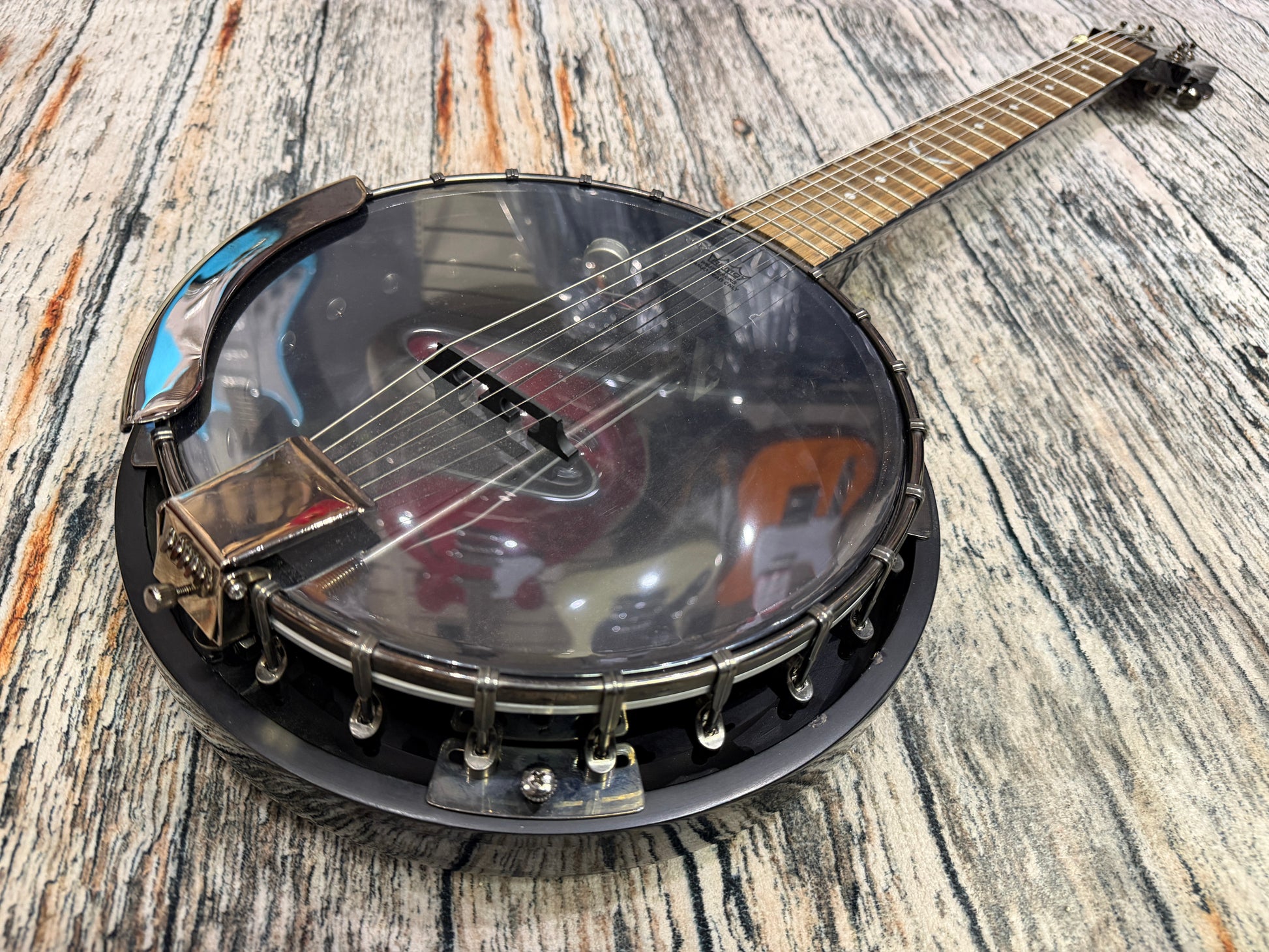 Just how much fun can you have without taking your clothes off? This is a great little thing to play with, if you ever fancied added a banjo sound into a mix or in the backline of a band, but don't have a banjo player, this Dean is tuned the same as a guitar so and guitarist can pick it up and get going!