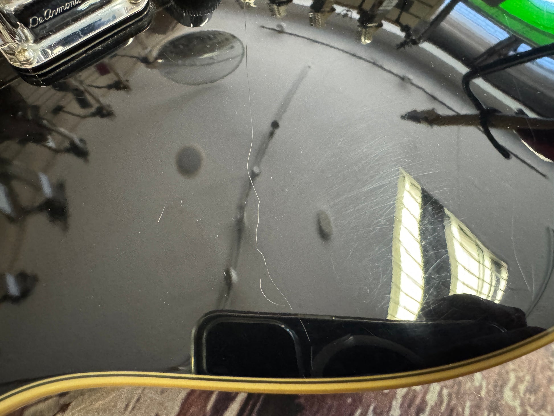 Now this one has been a rick legend in its lifetime, so it bear some minor battle trophies. Don't panic though, nothing is damaged, just a few surface marks from use, all electrics and hardware are good. It has been fully set up in store and restrung.