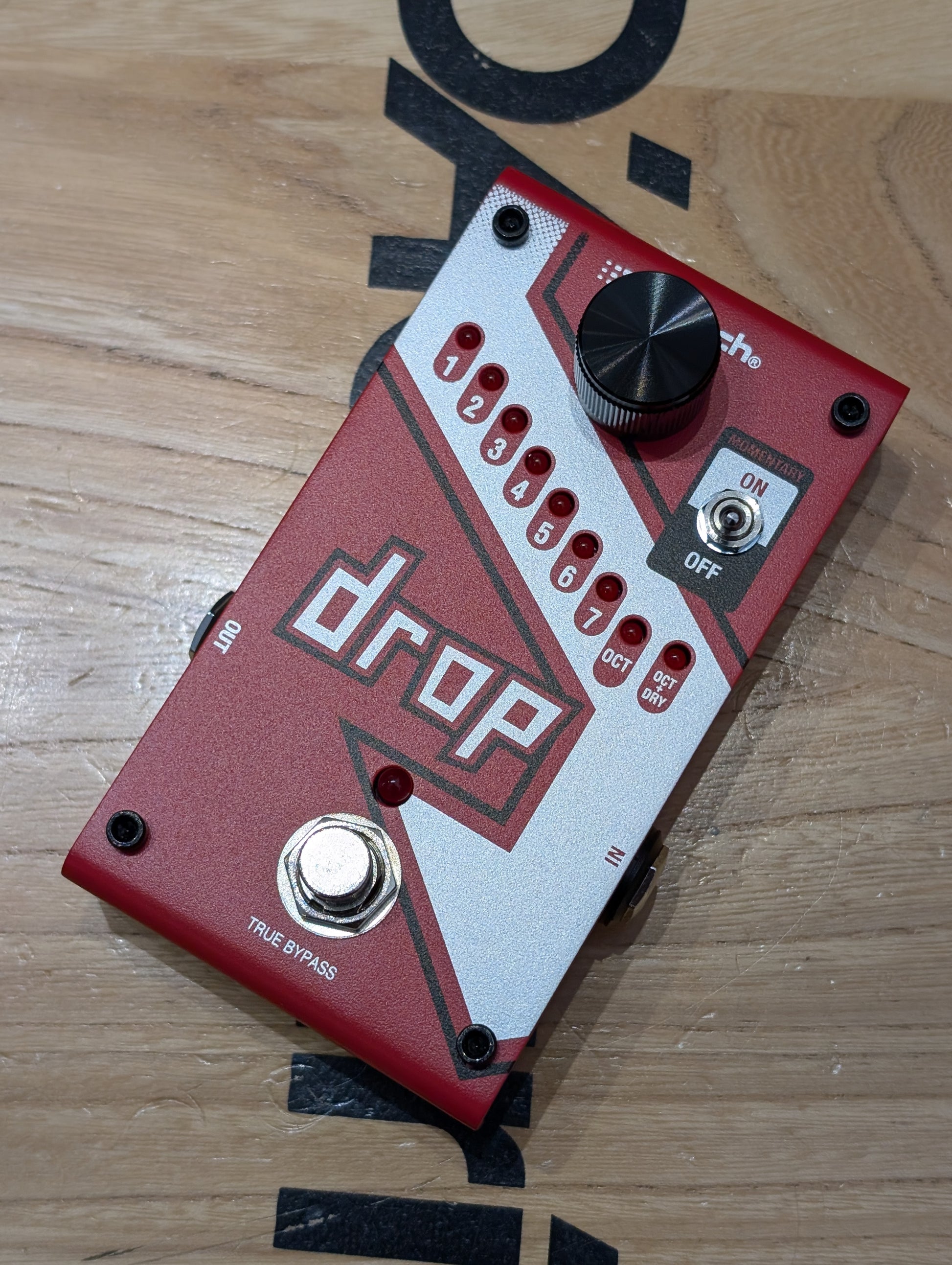 The DigiTech® Drop is a dedicated polyphonic drop tune pedal that allows you to drop your tuning from one semitone all the way down to a full octave, in 8 stages.