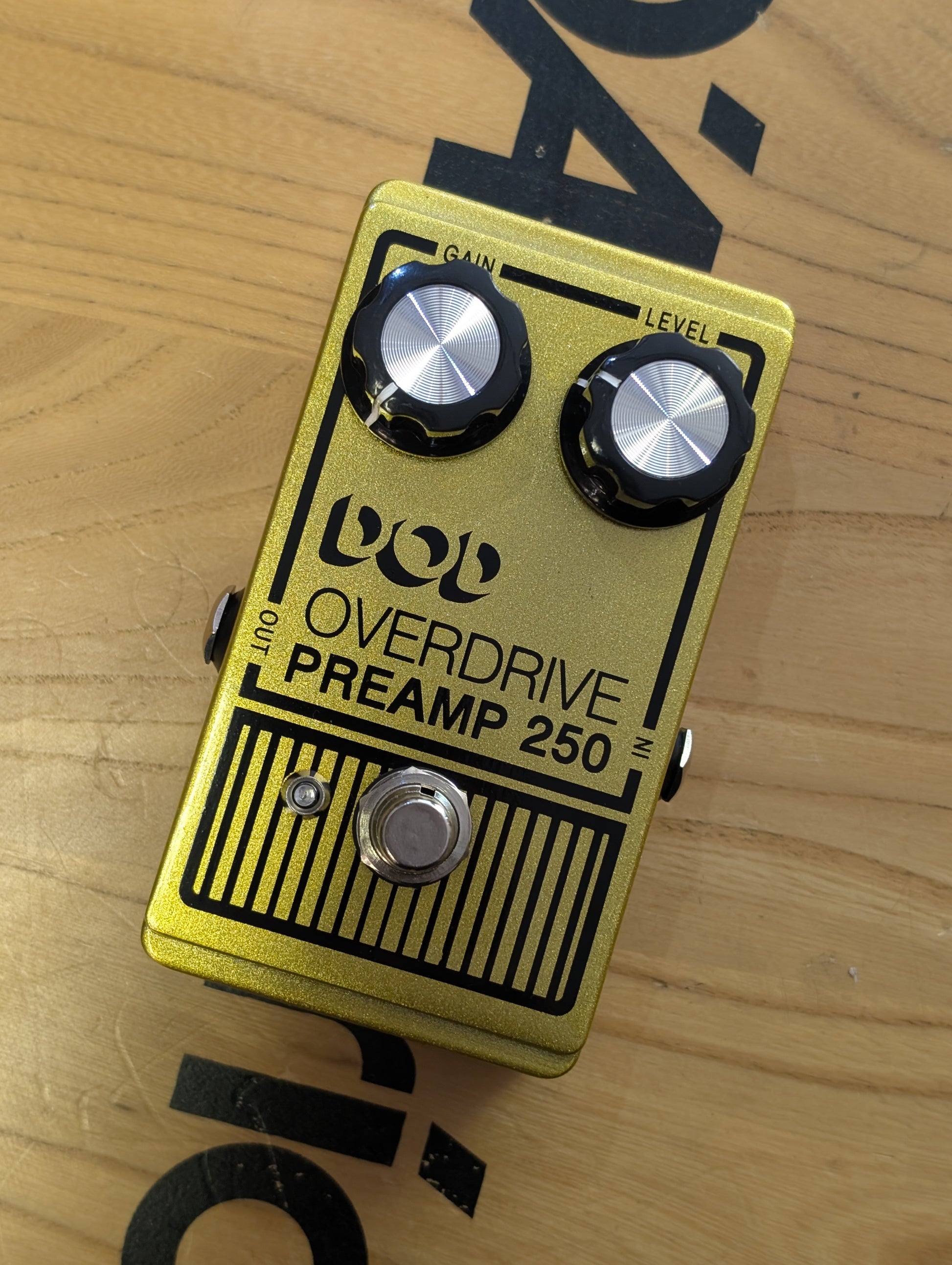 The classic returns, first conceived by David Oreste Defrancesco (DOD’s namesake) in the ’70’s as a way to get distortion and boost without any of the downsides that came with some of the fuzzes of the era. This updated version uses the vintage correct LM741 OpAmp, just like back in the ’70’s. Modern appointments like a tough, light, pedalboard friendly aluminum chassis. standard power input jack, true bypass, LED indicator, and bullion gold powder-coat makes the 250 at home on any pedalboard.