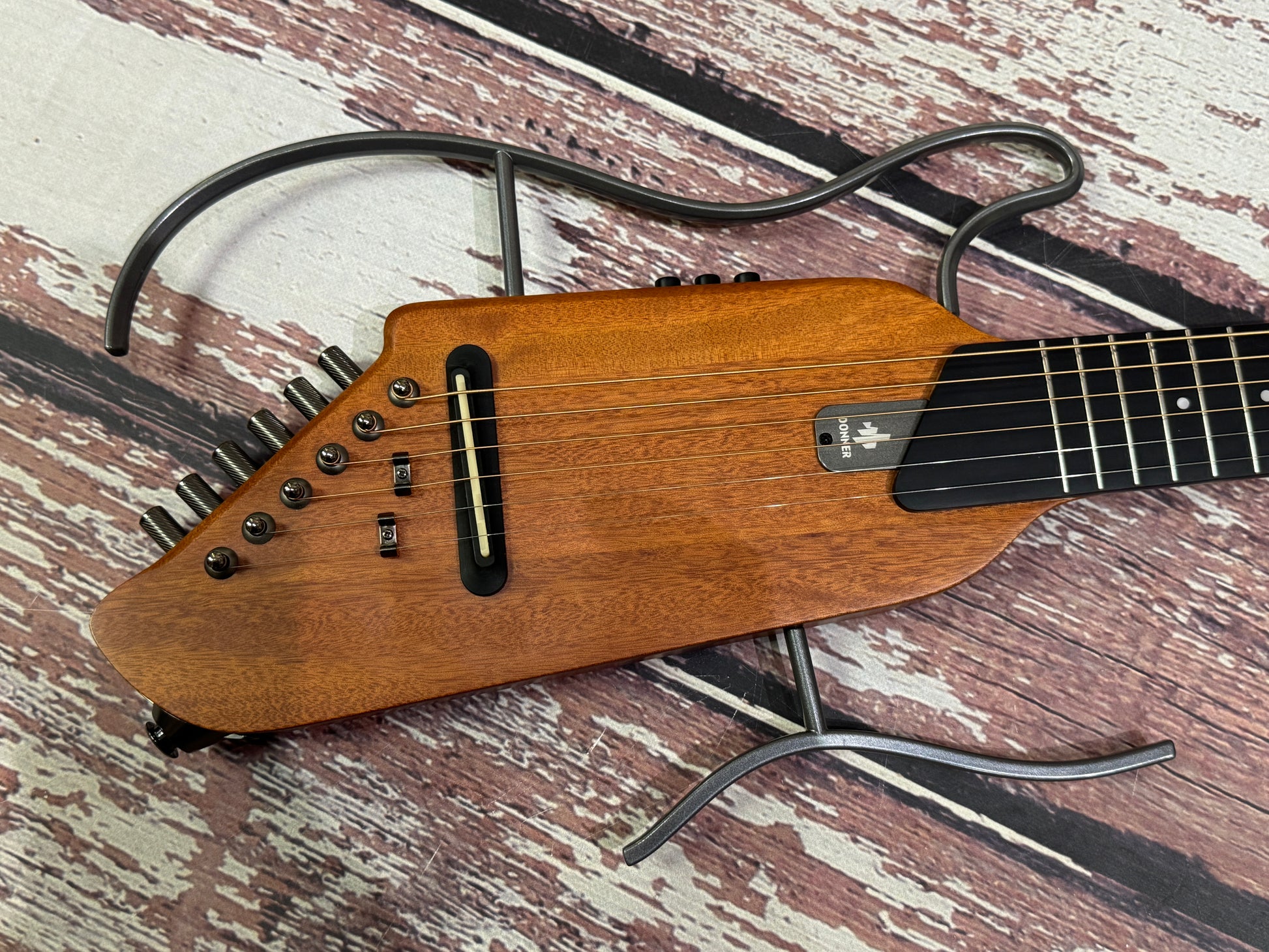 The ultra-compact and lightweight Donner HUSH-I Guitar is the perfect axe for travel and practice. Although being a full-scale guitar, it features a headless and detachable bar-frame design for extreme compaction and quietness with the least amount of wood. The onboard Donner custom-designed piezo pickup and preamp deliver you the ideal tone over the unplugged quietness via headphones and traditional cable output while also giving you full tone control with the “Volume”, “High”, and “Low” Knobs. The onboard “Phase” button also guarantees you stability in live venues. Play beyond the limits.