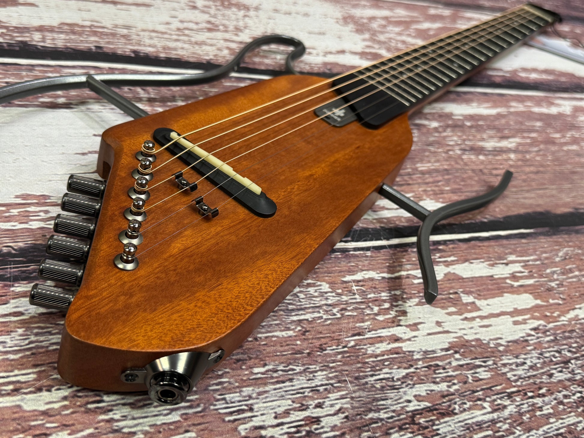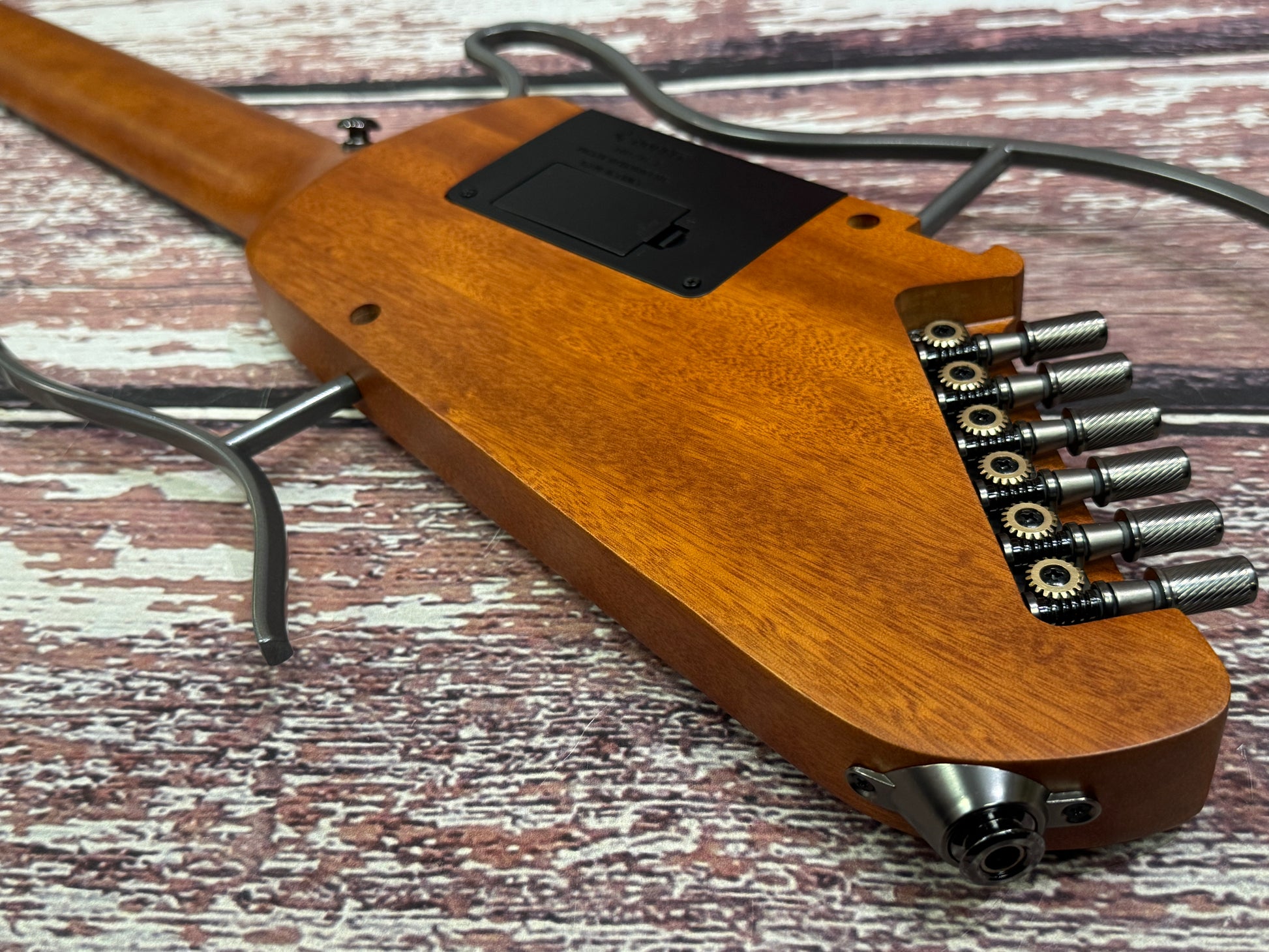 • Headless design, bottom-end tuning machines, and removable frames make it easy to pick up and play with maximum portability.