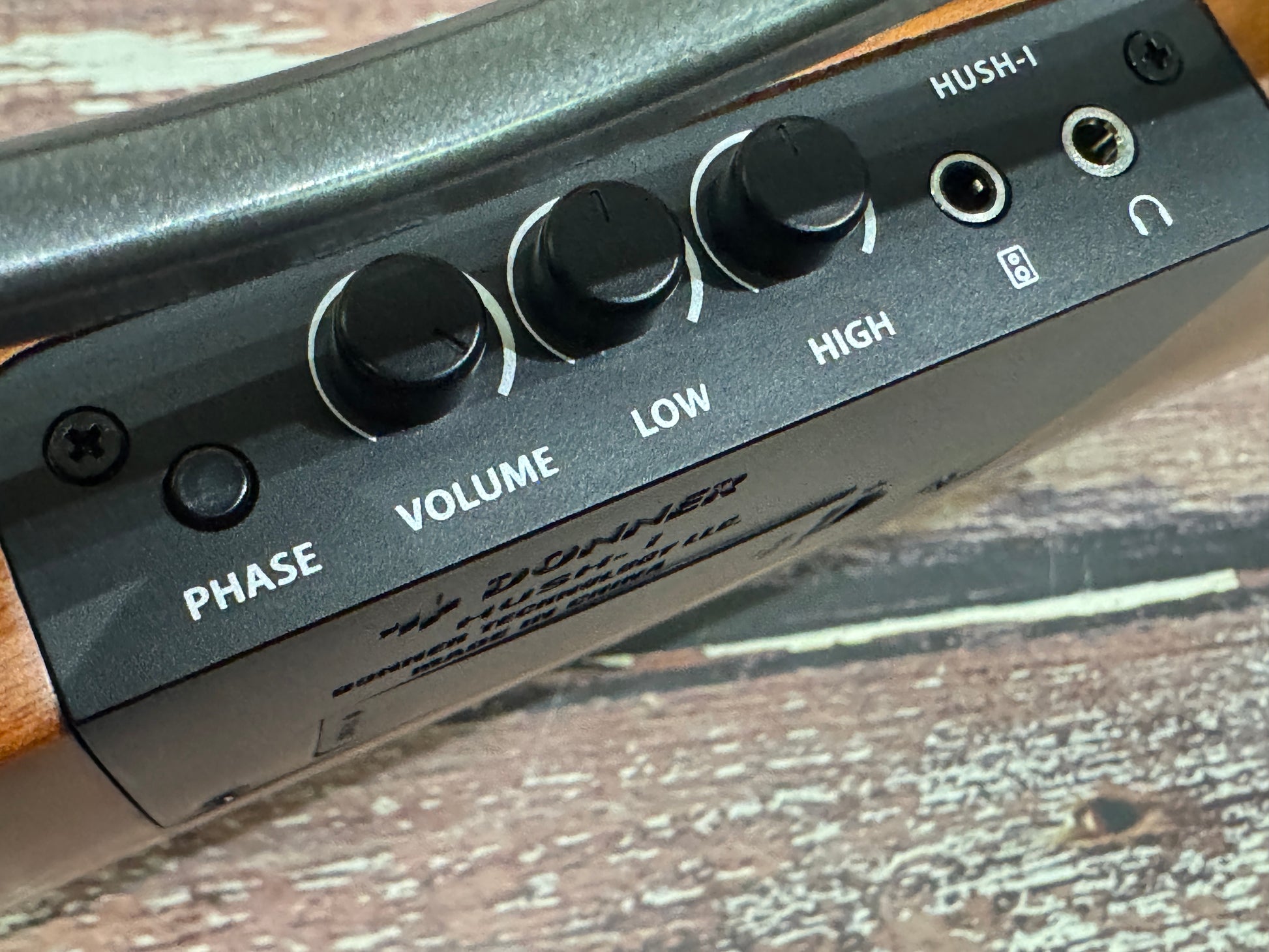 • Onboard preamp and pickup system to plug and play anywhere, anytime. Also includes a tone knob with a phase button.