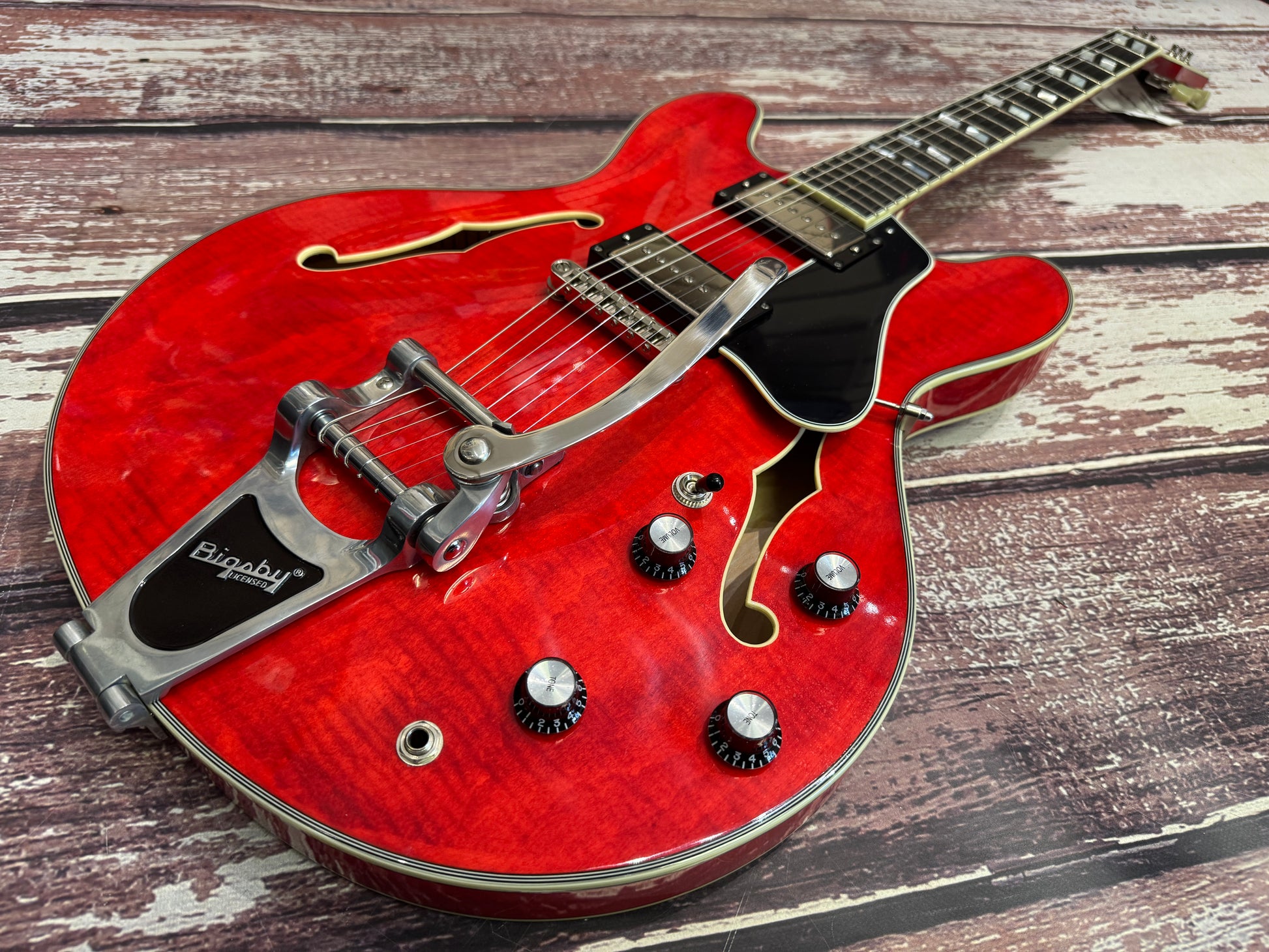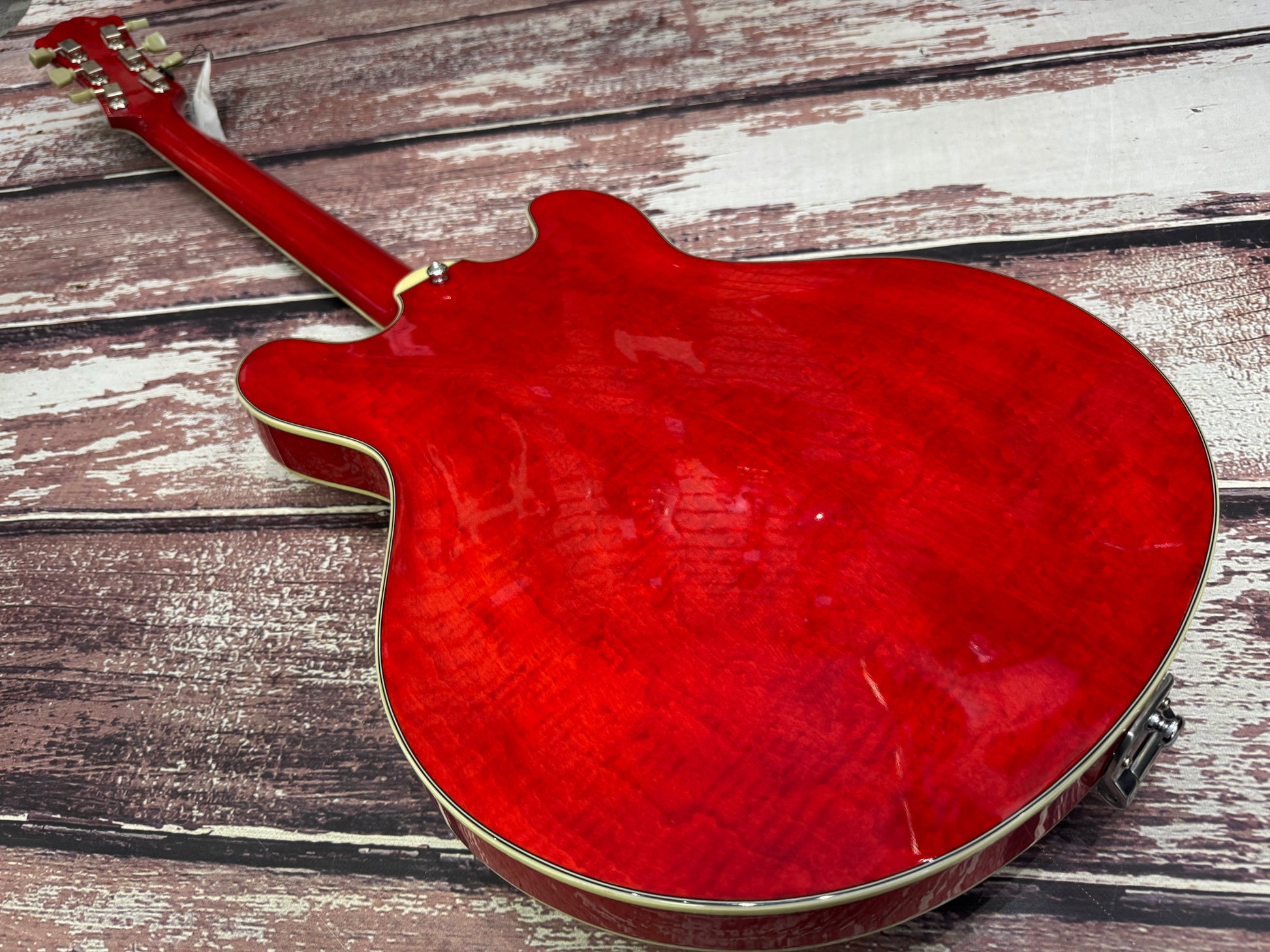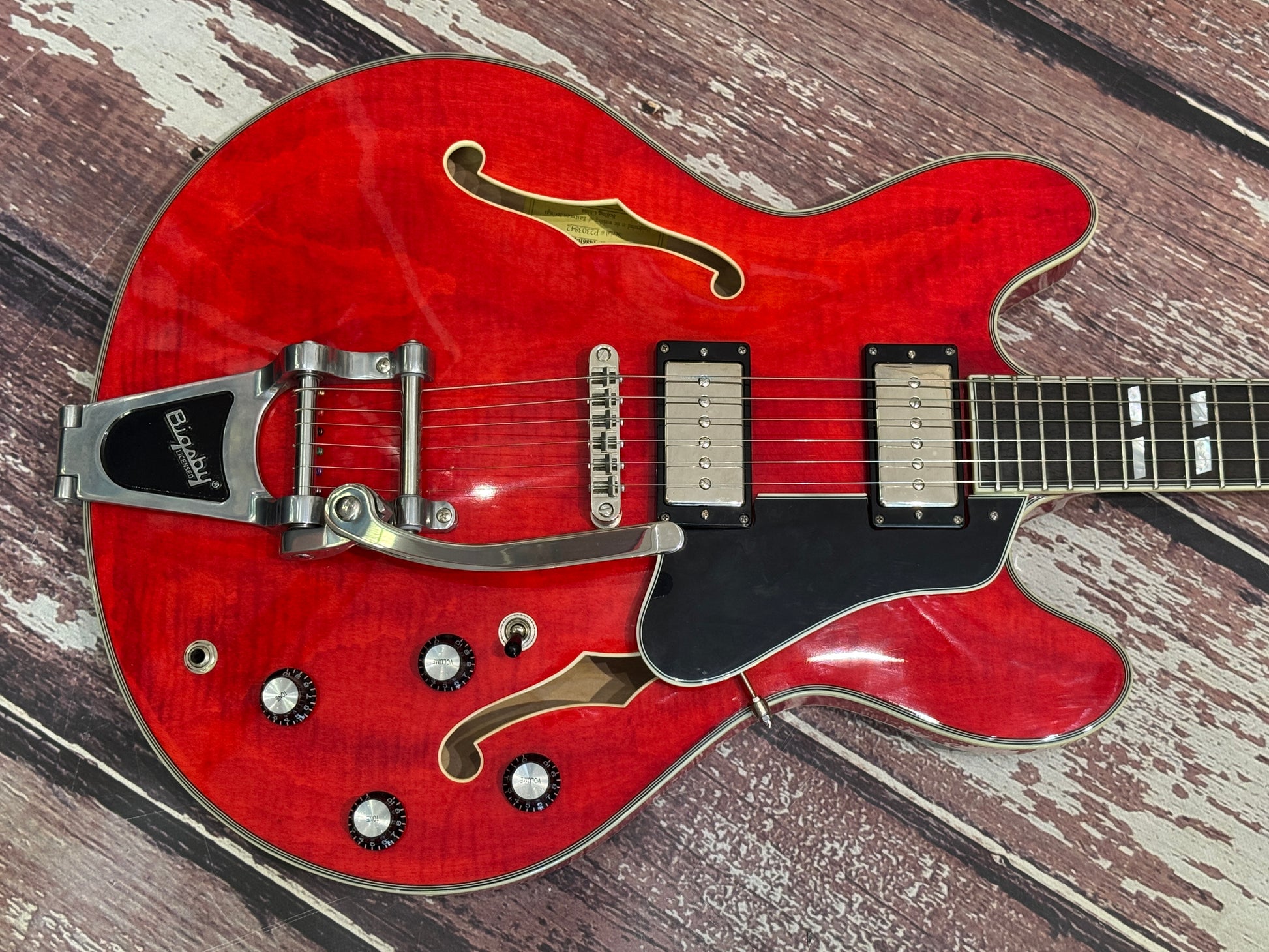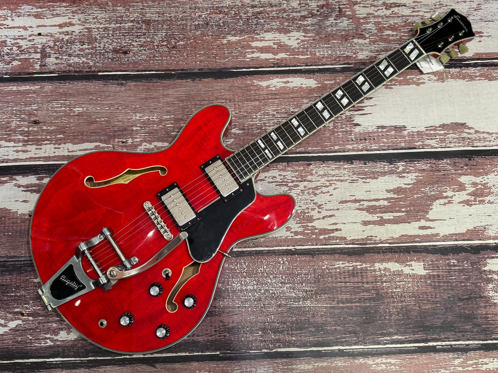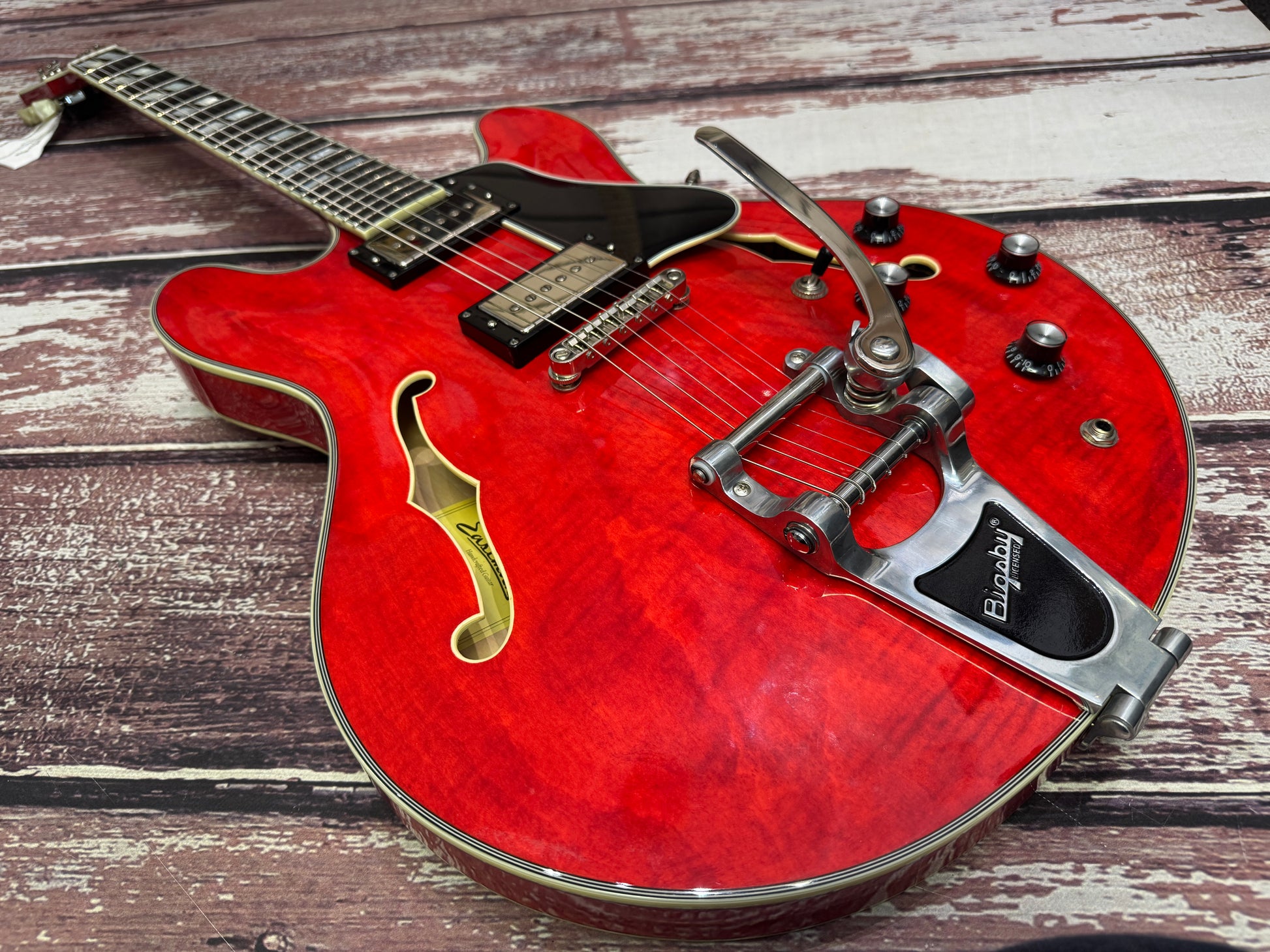 This one is a beauty, designed like a classic semi but loaded with a pair of Seymour Duncan fat cat P90s and finished off in style with the bigsby tremolo tail, all nicely packaged is a Eastman fitted hard case with COA.