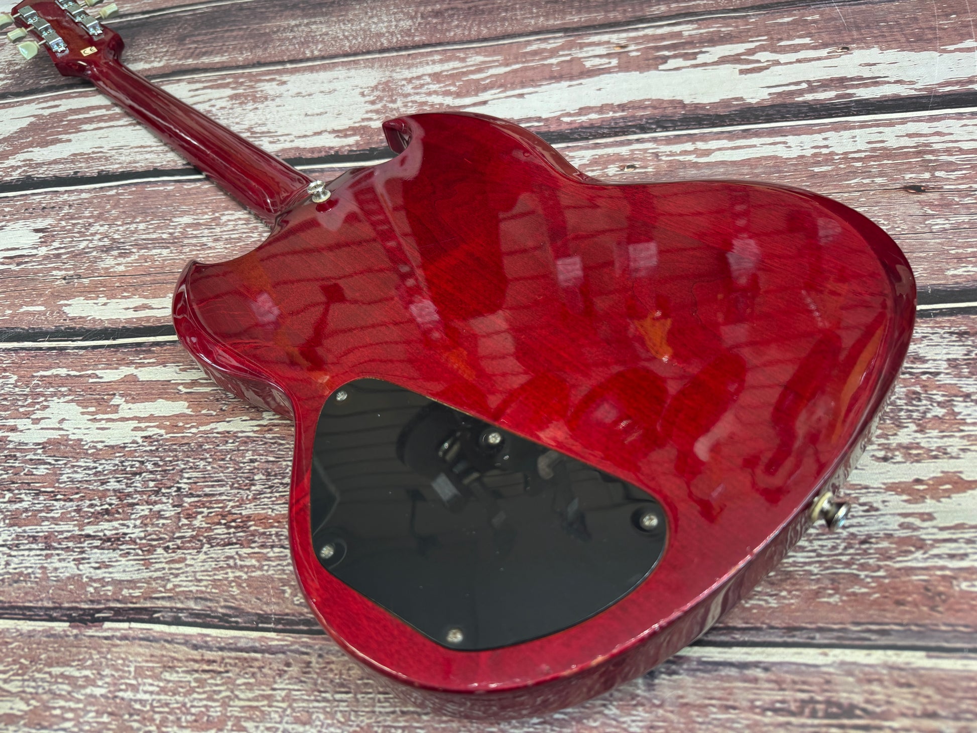 These are a classic Gibson style twin humbucker guitar with that lovely creamy and fat tonal range, but without excess weight. This one has been fully serviced/cleaned and restrung. It is a perfect intermediate guitar, also an ideal backup or even, a main stage guitar.