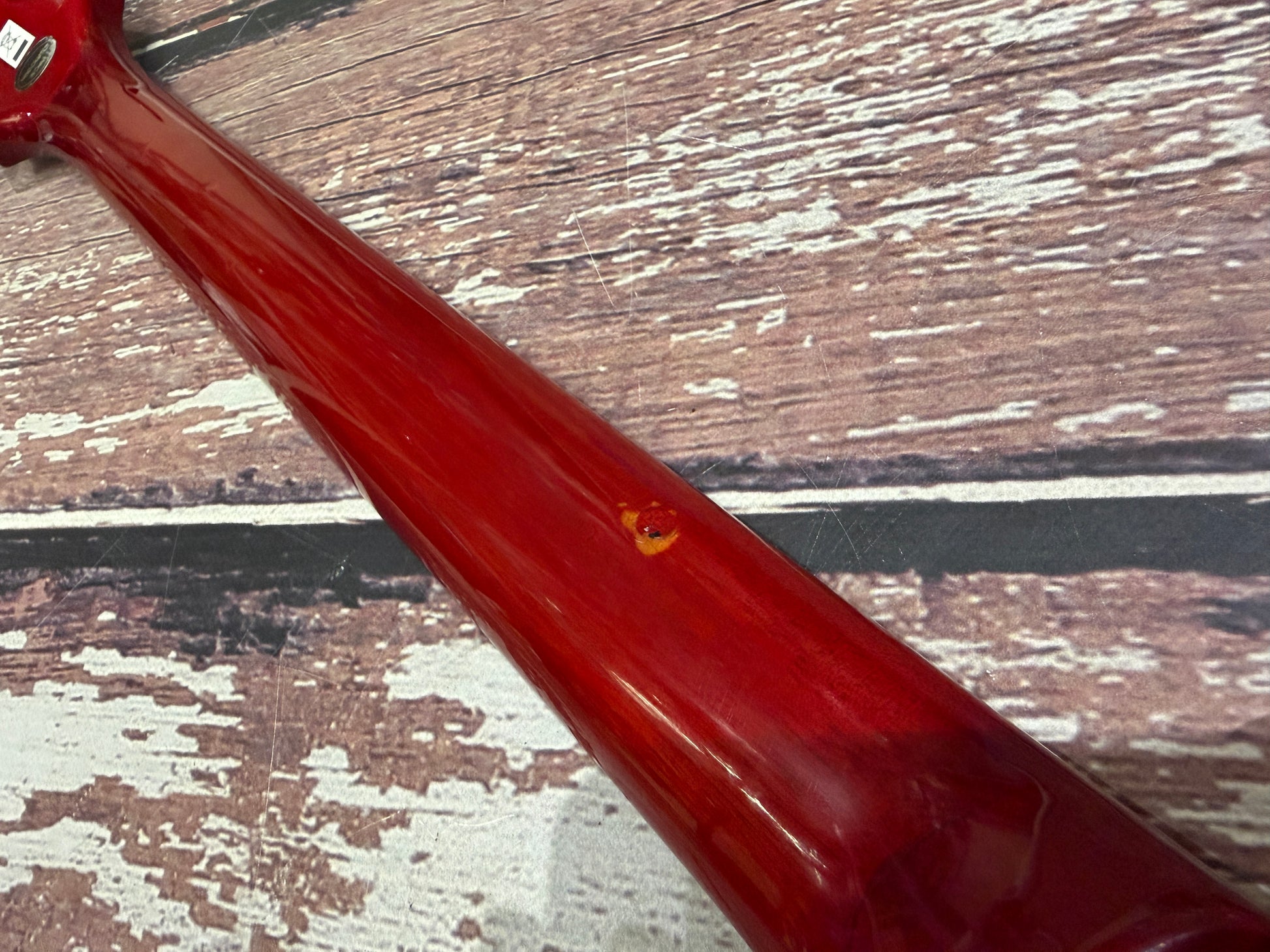 There was a very small ding on the back of the neck, which has been clear filled and smoothed so it is not felt when playing, though it can be seen - see the pictures.