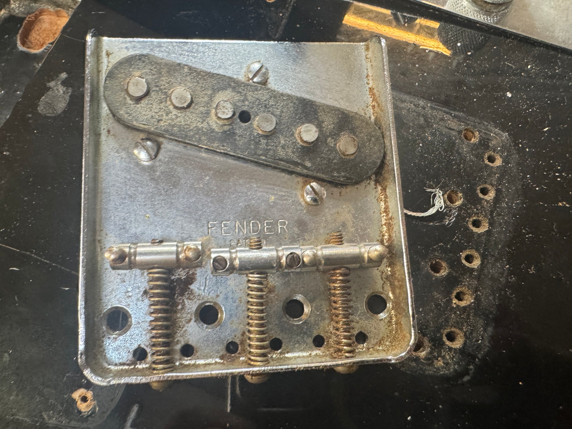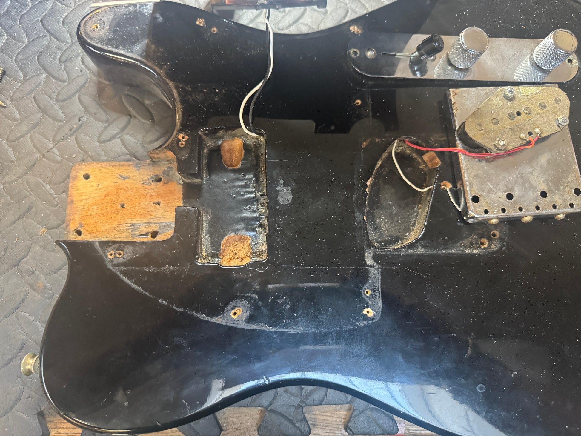 OK this is a real typical piece of guitar history! This was bought in the mid 70s when it had a humbucker in the neck position, it was lent to a friend and not seen for 30 years, then returned in its current condition.