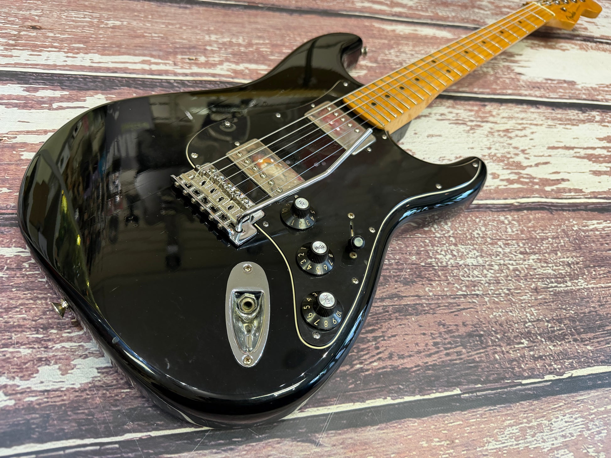 BOOM, here we have it, the uber popular blacktop HH Fender Stratocaster, these really are a lot of fun. This one has had the original pickups upgraded to Epiphone USA humbuckers and it does sound somewhere in-between an SG and LP, a great all round rock/blues machine.