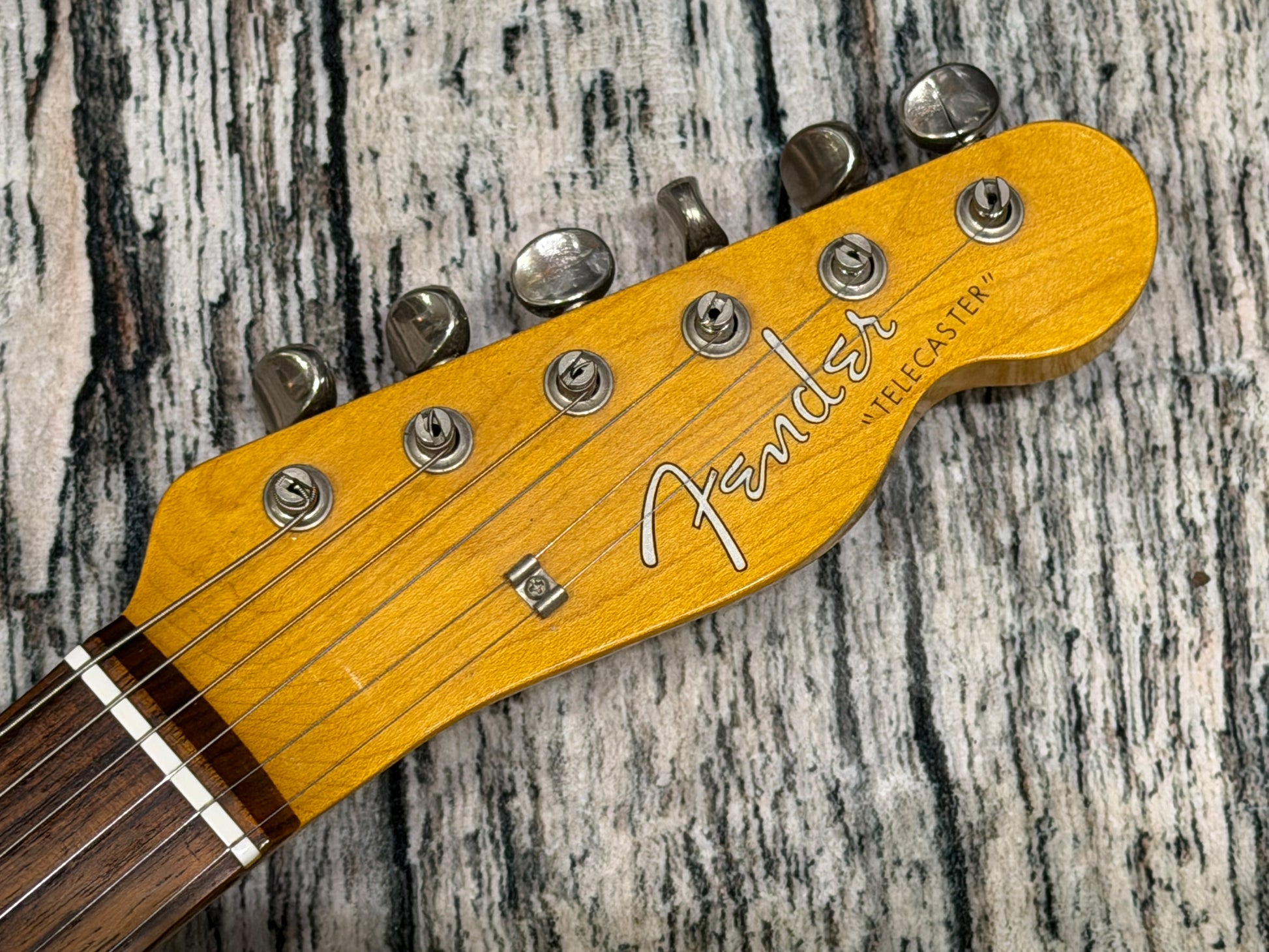 This is a bit of a special Tele, with USA wiring loom, 2 Strat pickups and a Tele bridge pickup, as it left the factory. The body is specifically S/S/S routed and has belly and arm contours.