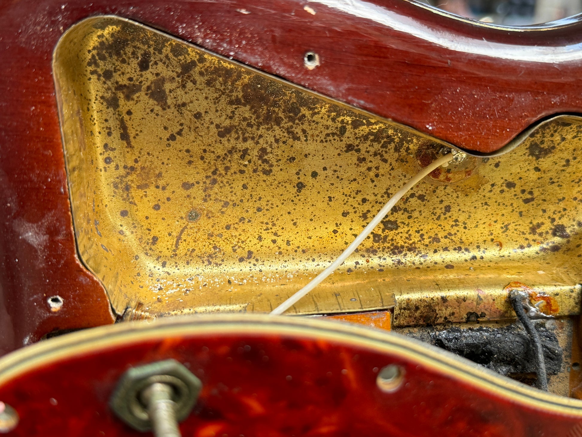 Every now and then a wonderful piece of Fender history comes through our hands and all the better if it has a good provenance too! This beautiful Jazzmaster was bought in South Africa around 1965 second hand from Grahame Beggs of The Shangaans. It has been with the same owner since. It had been over sprayed in gold, but subsequently taken back to the original burst. Having been in SA for many years the colours will have faded significantly. Other than having a set up there has been no alterations.