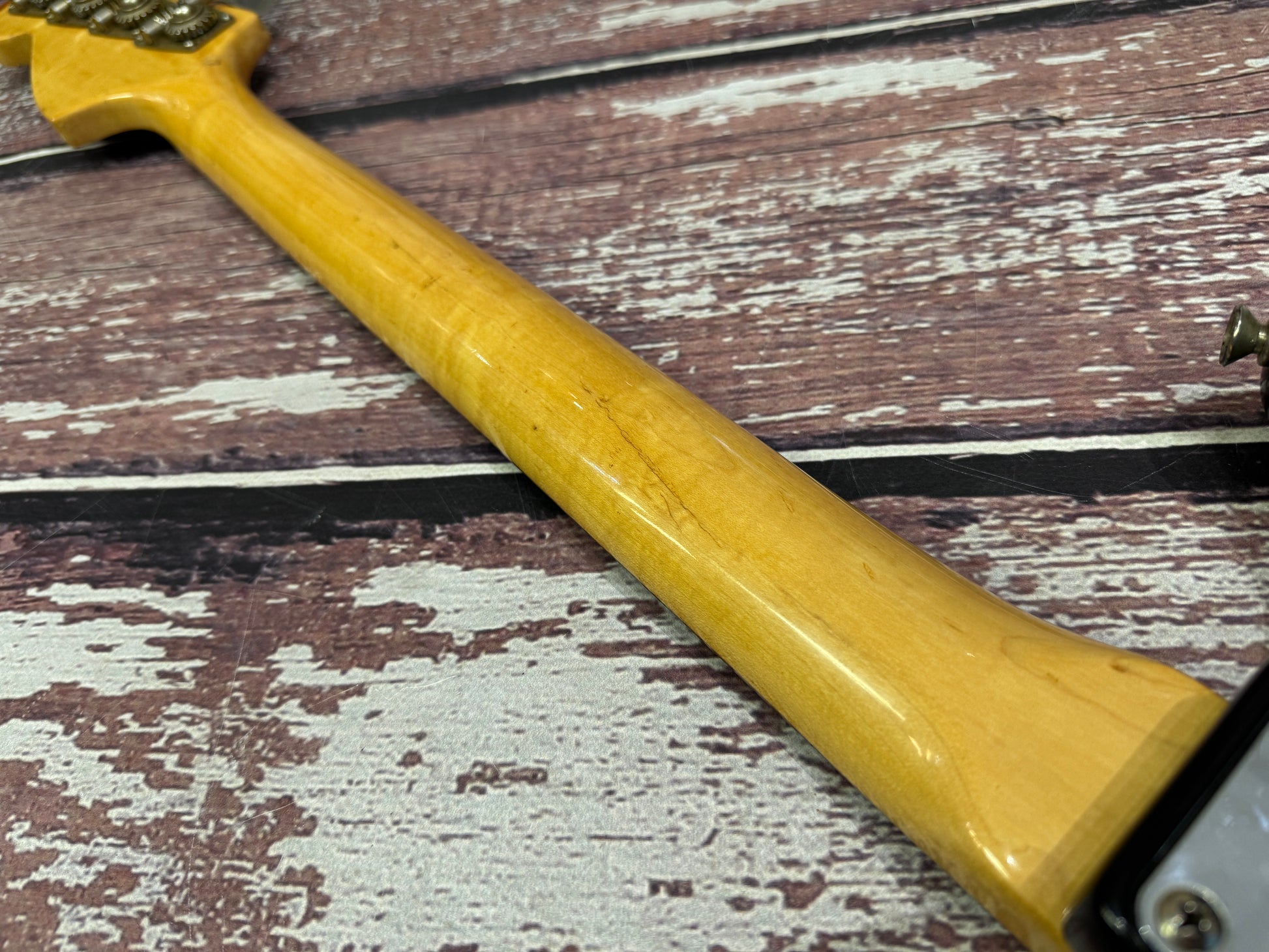 Now this is rather lovely, this fabulous bass has been owned by the former owner for decades, it is 100% original with the neck dated as 1978, the body as 79 and the pots as 77, classic USA Fender from this era.