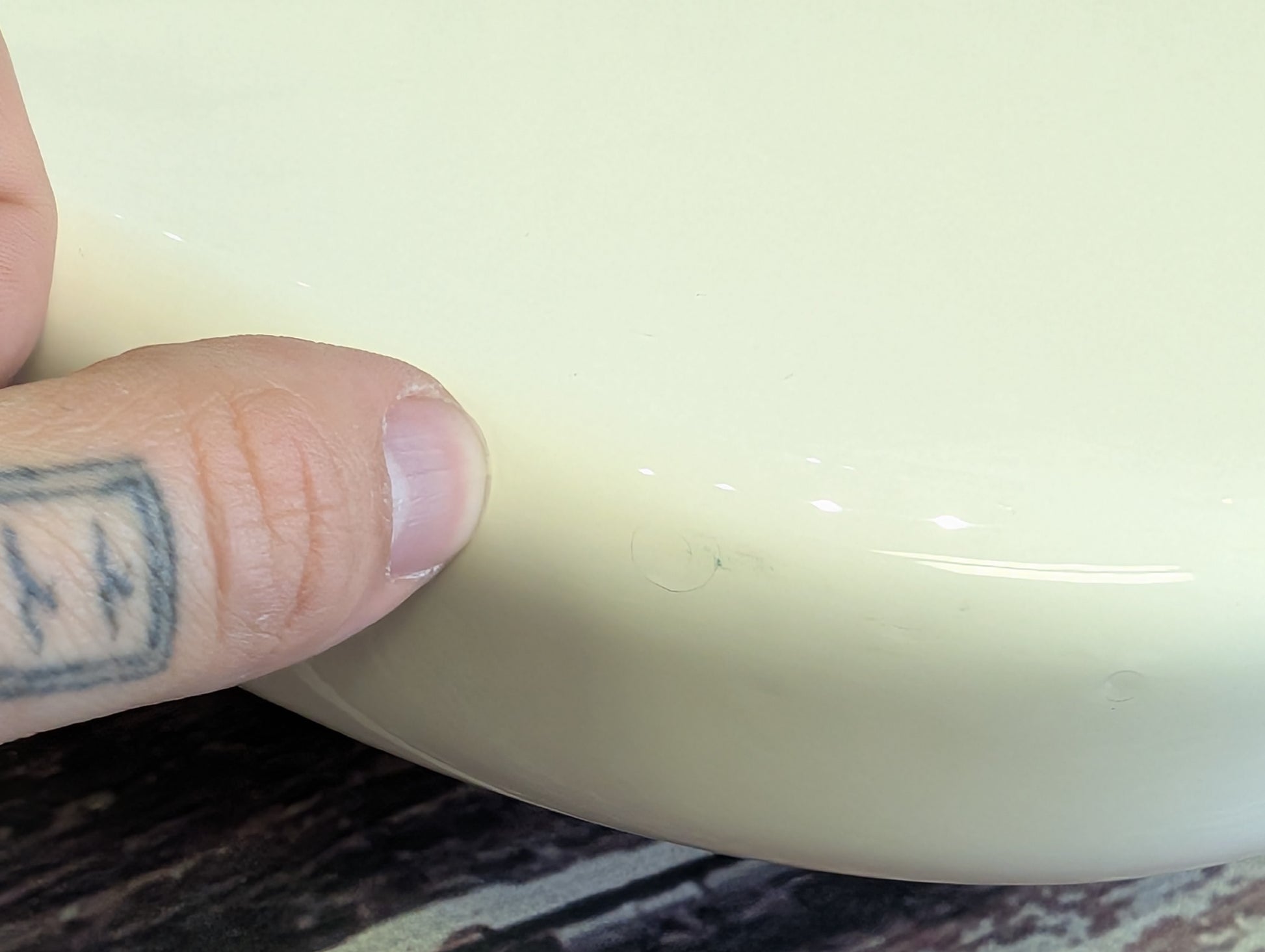 The condition is good, with very minimal fret wear, and only a couple of little dinks in the finish (pictured). There is a tiny hairline mark at the corner of the neck pocket. This is incredibly common on Strats and is just a cosmetic mark to finish lacquer - nothing more nefarious than that! This one has had the original parchment pickguard swapped out for a rather fetching mint green one, but we do have the original guard as well if you wanted it swapped back.