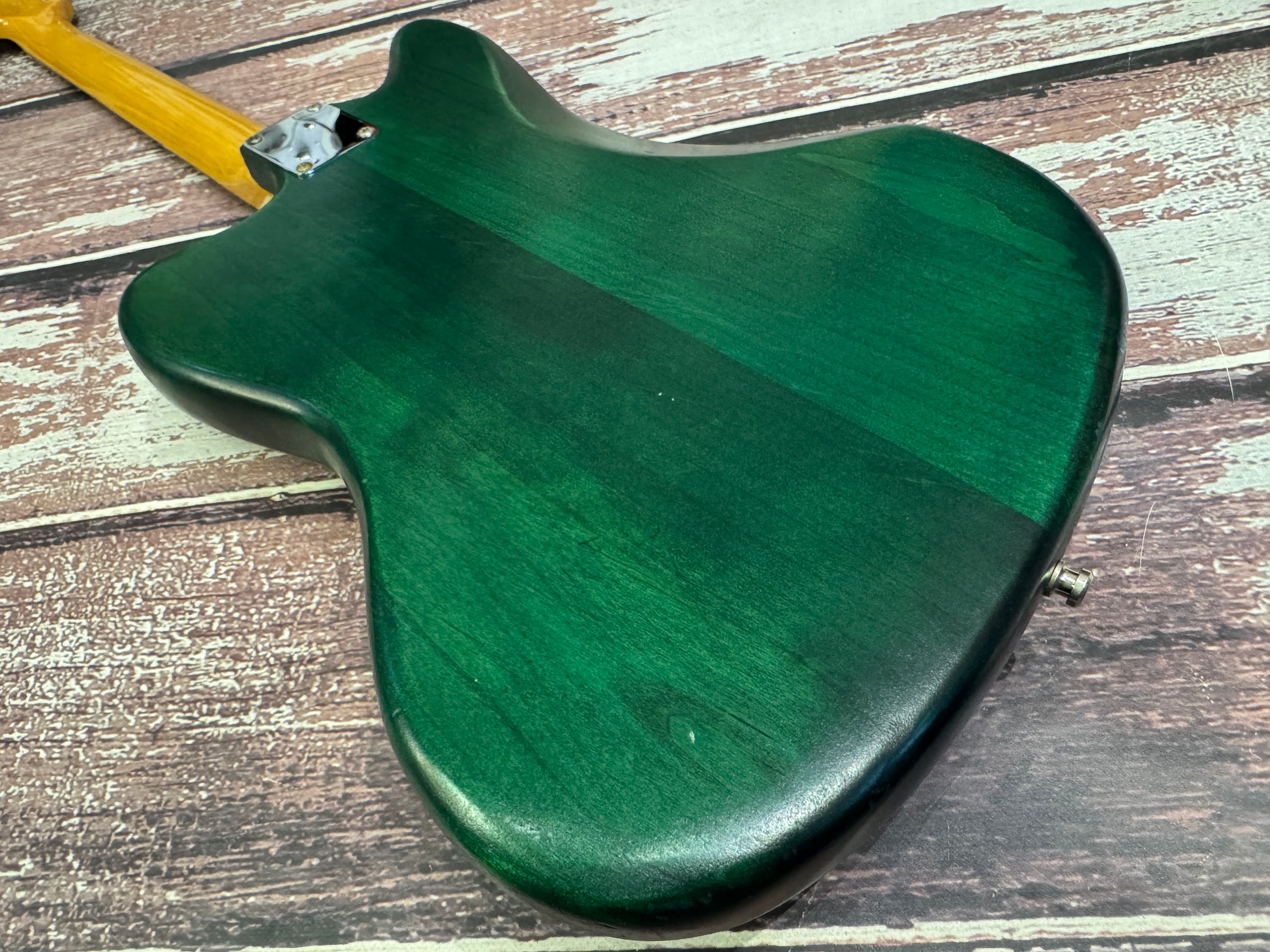 Yes as you can see this lovely jag has been stripped and had a green oil finish added and a black guard fitted, making it a pretty unique example, and in my humble opinion, a real cool looking axe.. This one is more like the originals with a pair of single coils, giving a classic Jag-jangle!