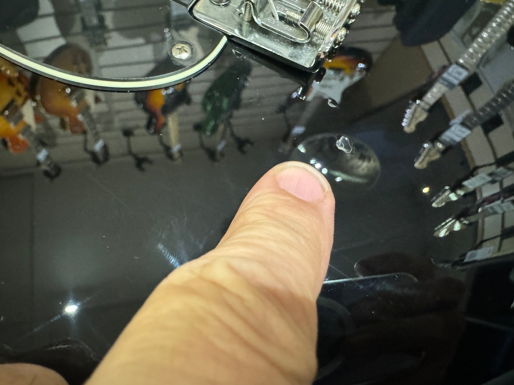 There is a ding on the front and a scratch on the back, shown in the pictures, very light play wear in evidence.