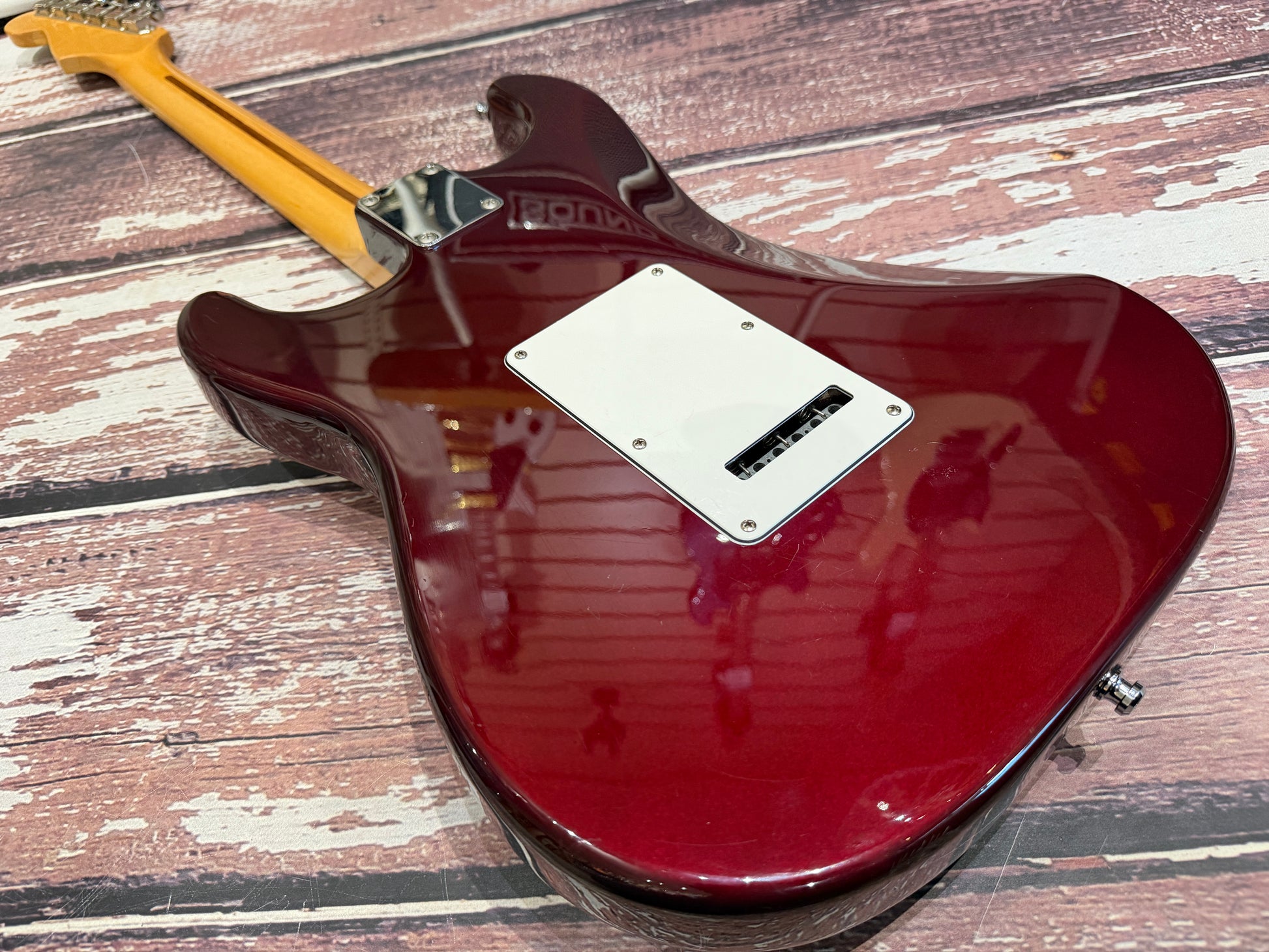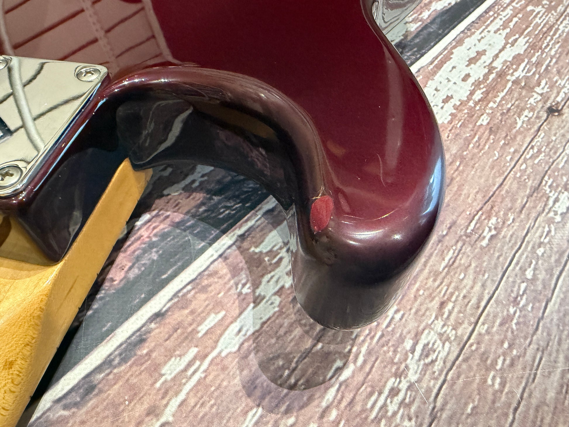 This is a 2001 Mexican model in midnight wine, there is a small ding on the upper horn shown clearly in the pictures plus other play wear in keeping with its age. All electrics and hardware are good, very minor fret wear with no need for work for a good few years yet.