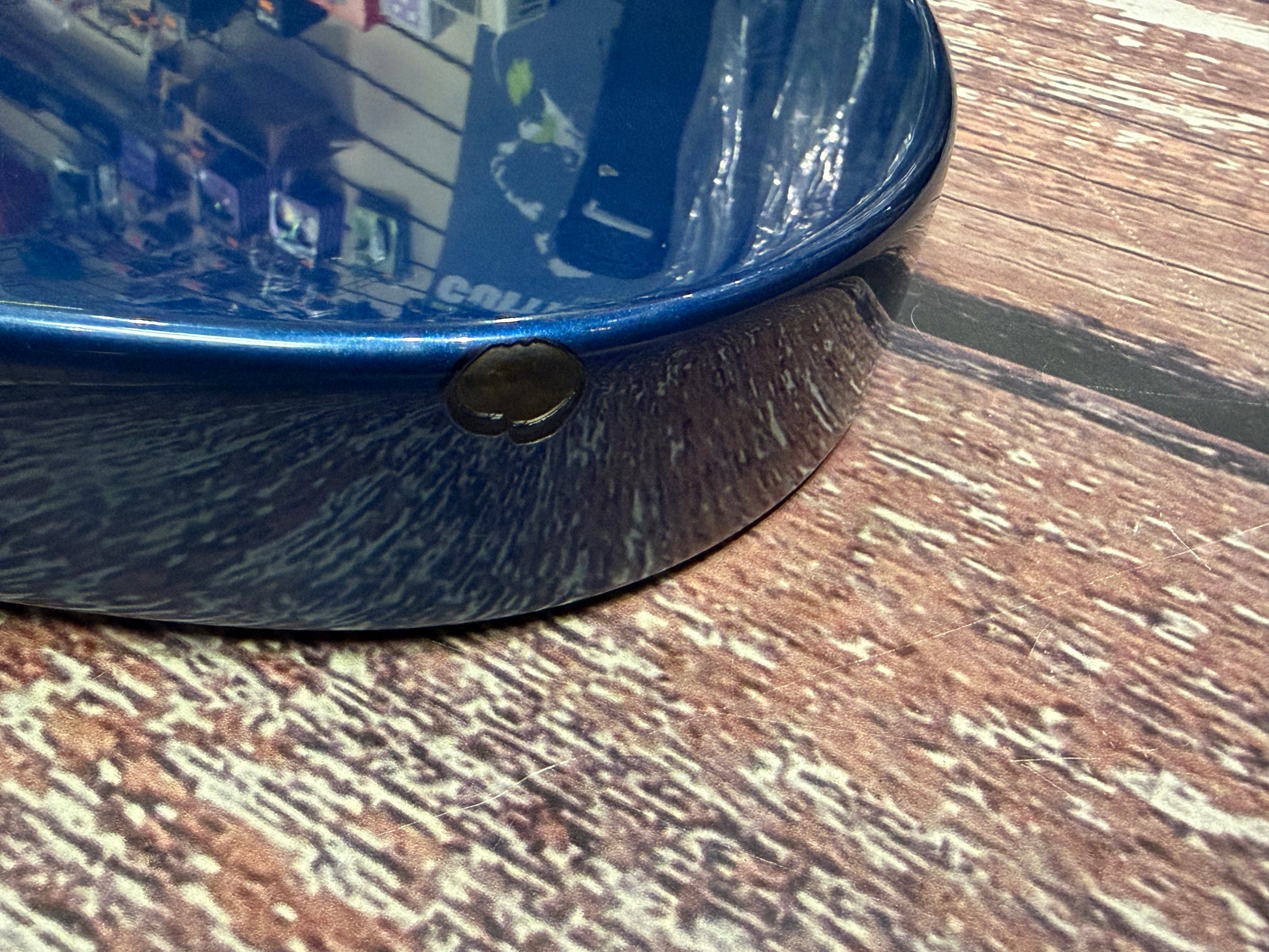 There are a couple of minor points to note, the lacquer was worn from a small area on the neck, this is smooth and does not effect playing at all. There is also one paint chip on the rear/back, shown in the pictures.