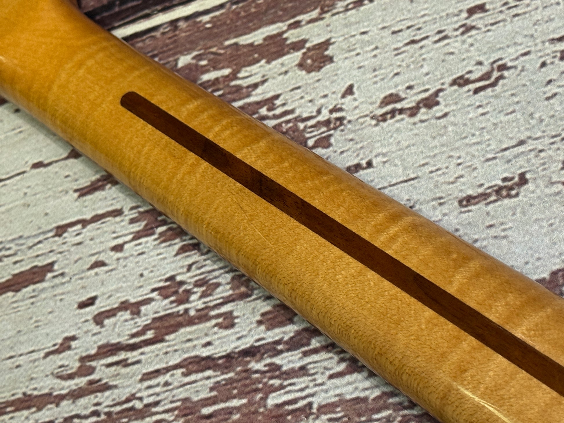This one is 26 years old and has what I would call honest wear for its age, slight scuffs on the body, no serious dents or dings. The classic lacquer splits around the neck pocket from paint shrinkage over the years, but all together a sound and very gig worthy workhorse.