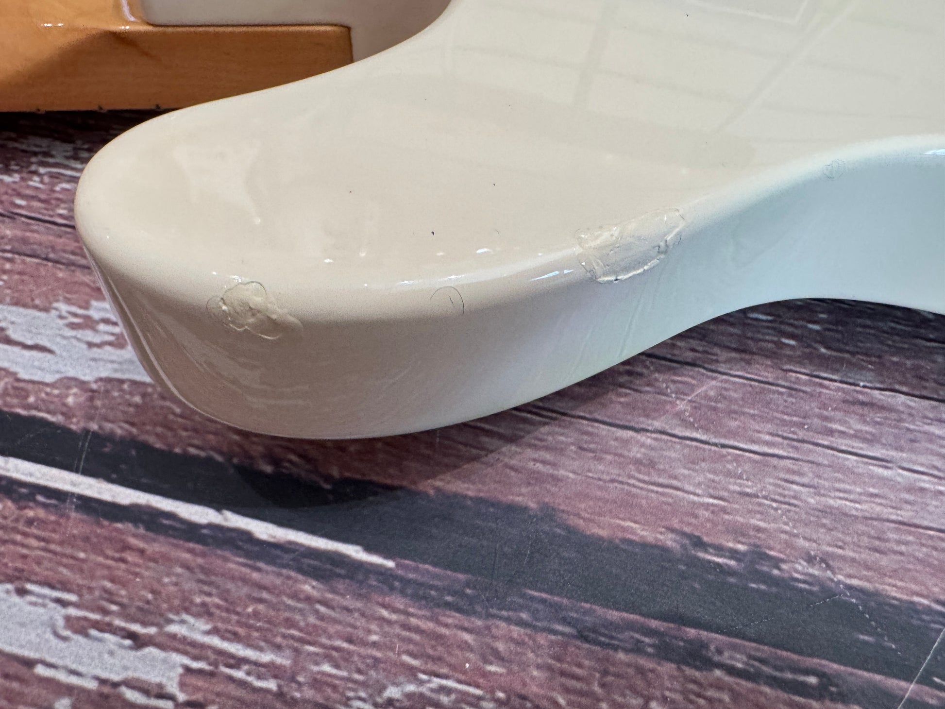 This one has a handful of colour matched touch ins on the body edges, all shown in the pictures. The neck, frets, hardware, electrics and nut are all perfect without issue, which all contribute to the way this one plays.