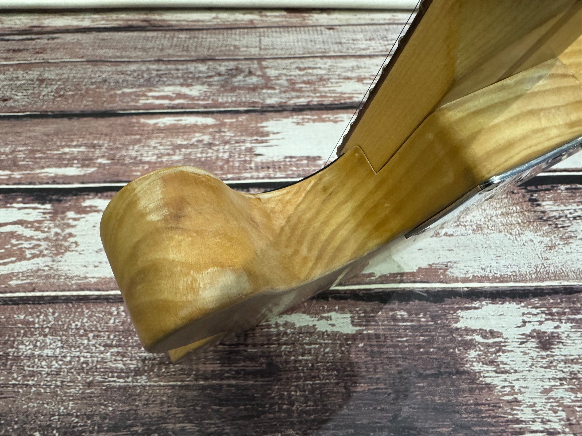 I love this one, if there was ever a "raw power" Tele it would be this. In 2009 this left the USA factory as a blonde highway 1 Telecaster, and as many of these did, the finish started wearing off quickly. The previous owner decided to finish the job and strip it back to the satin clear finish.