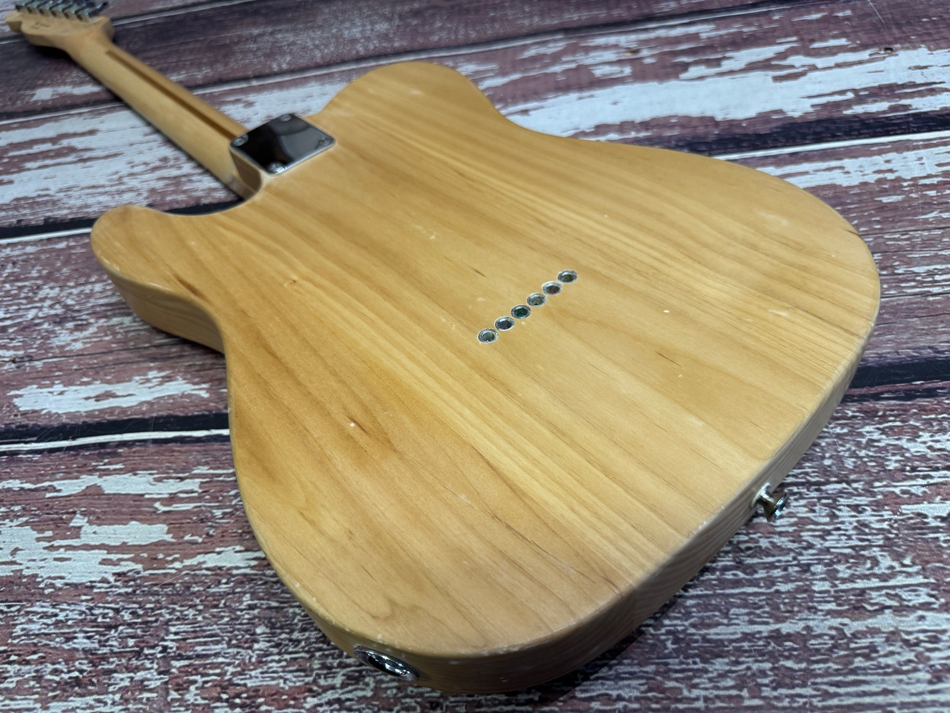 I love this one, if there was ever a "raw power" Tele it would be this. In 2009 this left the USA factory as a blonde highway 1 Telecaster, and as many of these did, the finish started wearing off quickly. The previous owner decided to finish the job and strip it back to the satin clear finish.