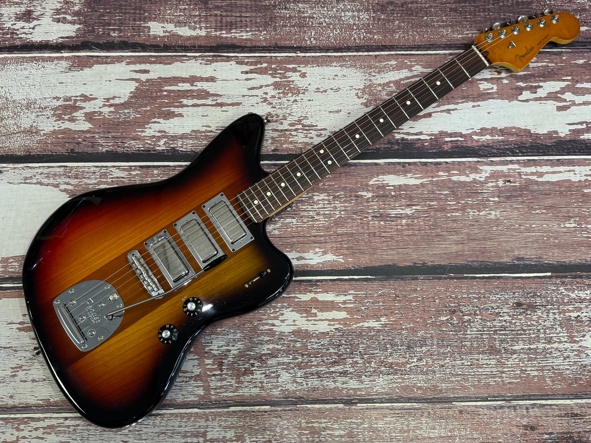 Oh yes, I best mention the guitar while I am here on my soap box - this is a 2020 lockdown buy, from that covid inspired guitar binge era we give you the Fender USA Parallel Universe Spark-o-matic Jazzmaster. You have to do a double take looking at this fabulous guitar, yes it does have a hint of Firebird about it with those 3 Seymour Duncan chrome mini humbuckers. It is certainly unique and this example is immaculate with the slightest hint of play wear, and it is suuuuuuppper cool!