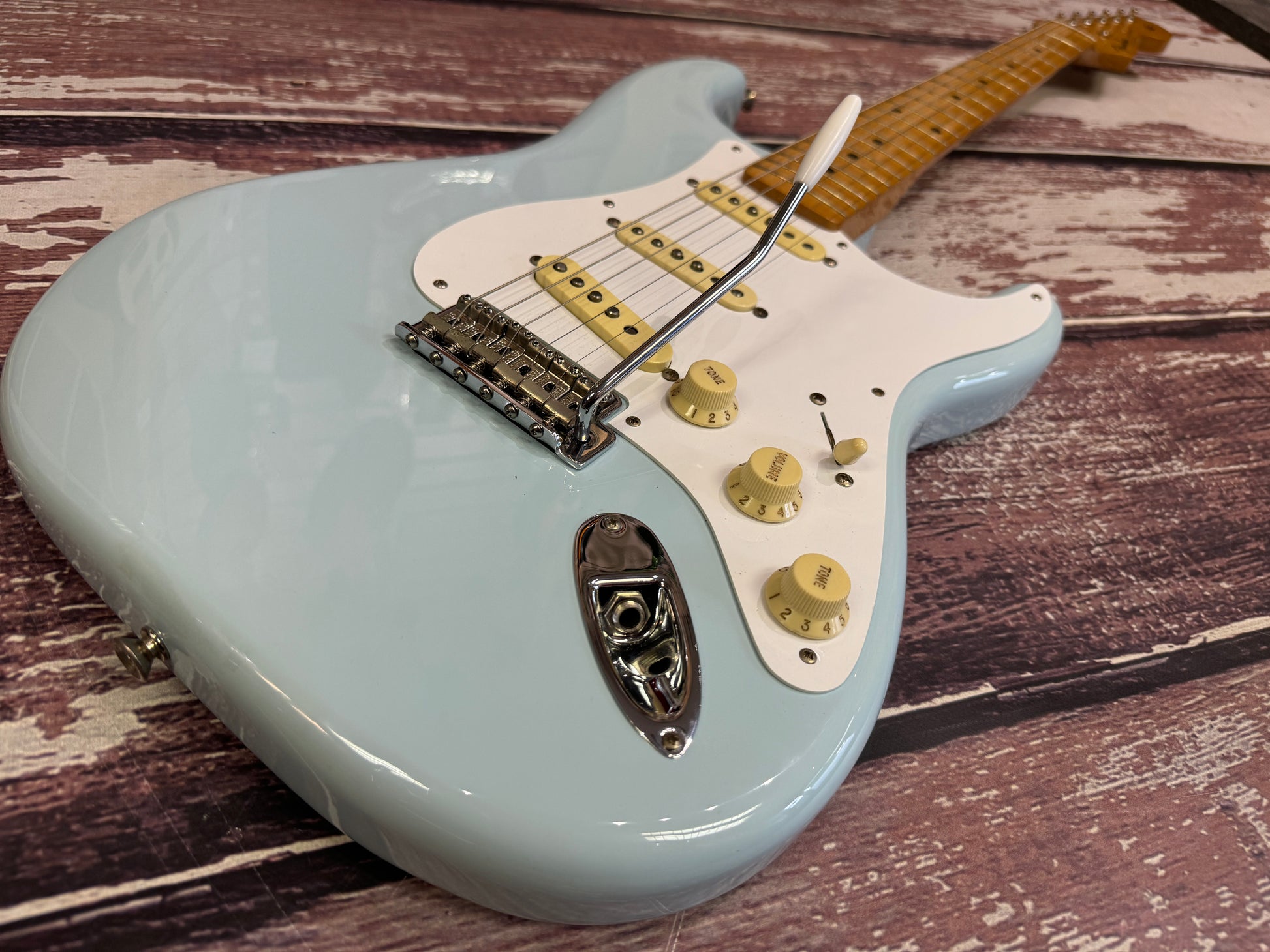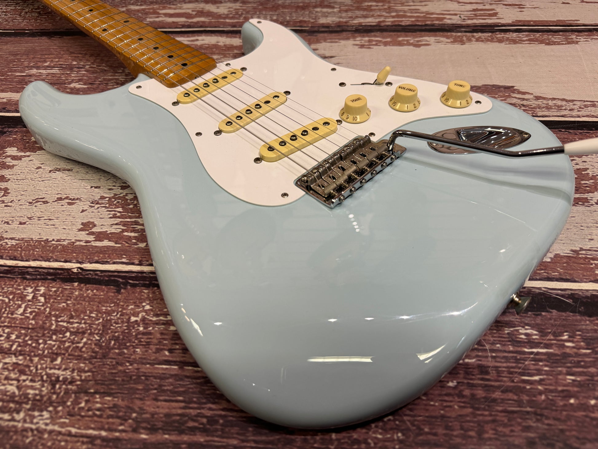 We have set this one up and it is a lovely playing guitar, with a nice easy playable action and classic vintage Strat tones.