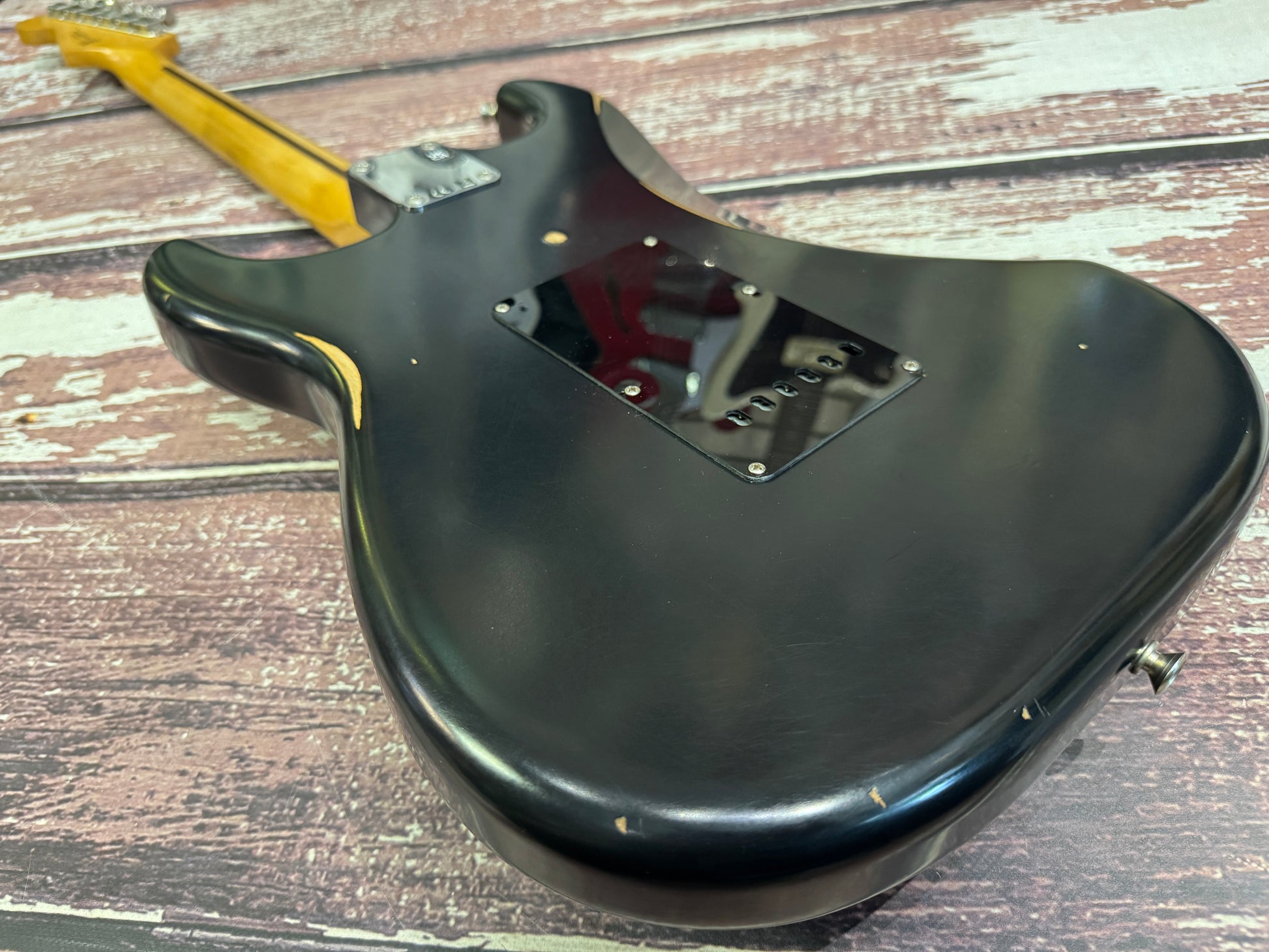 It is a classic nitro finish over alder body, so we are getting close to a custom shop relic spec now!