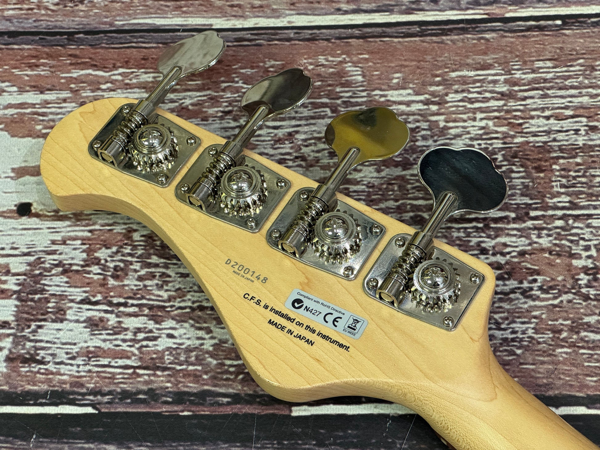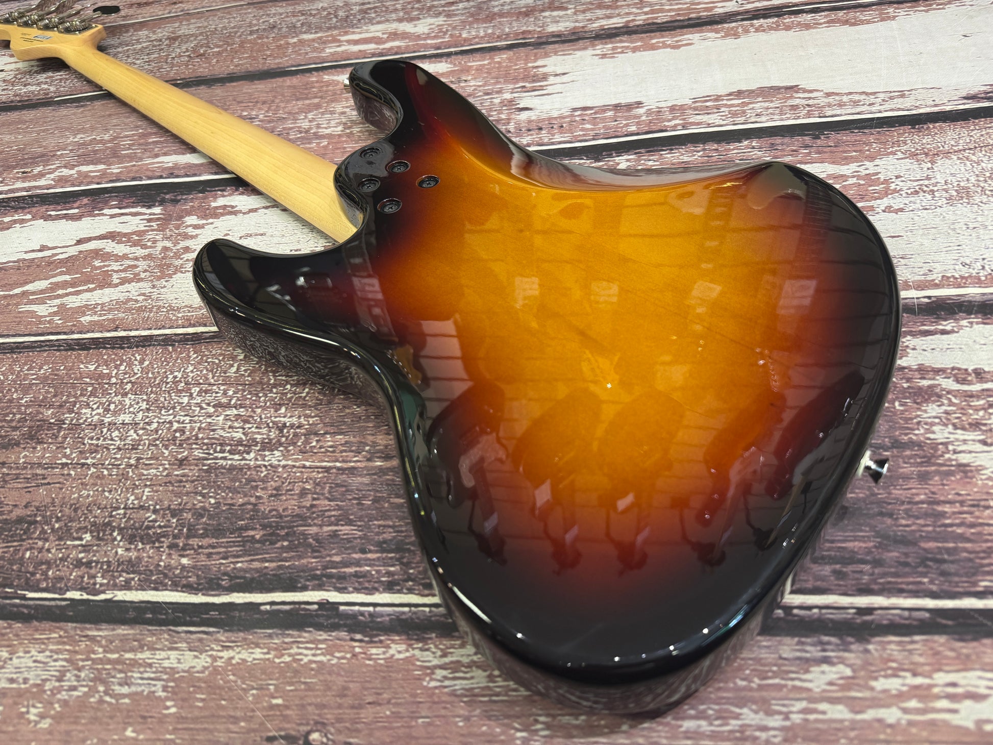 This is a very well made J style with regular single coils that have independent volumes and a master tone. Overall condition is excellent, asides one small chip on the lower edge.