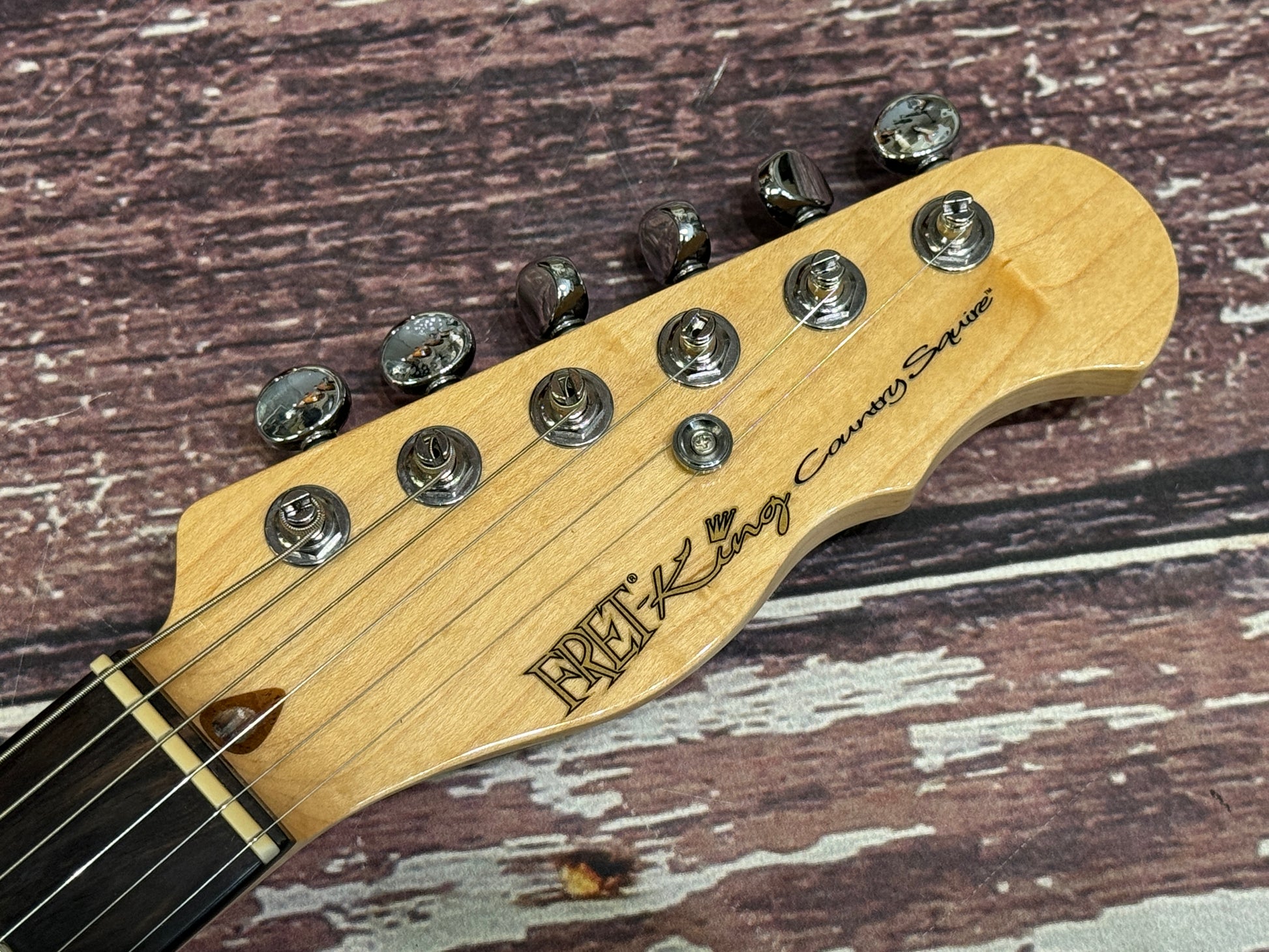 Fret King have been made in several countries over the years, the best models from the UK and Korea, and as you can see this is a lovely Korean example, boasting an ebony fretboard and humbucker/single pickup combo.
