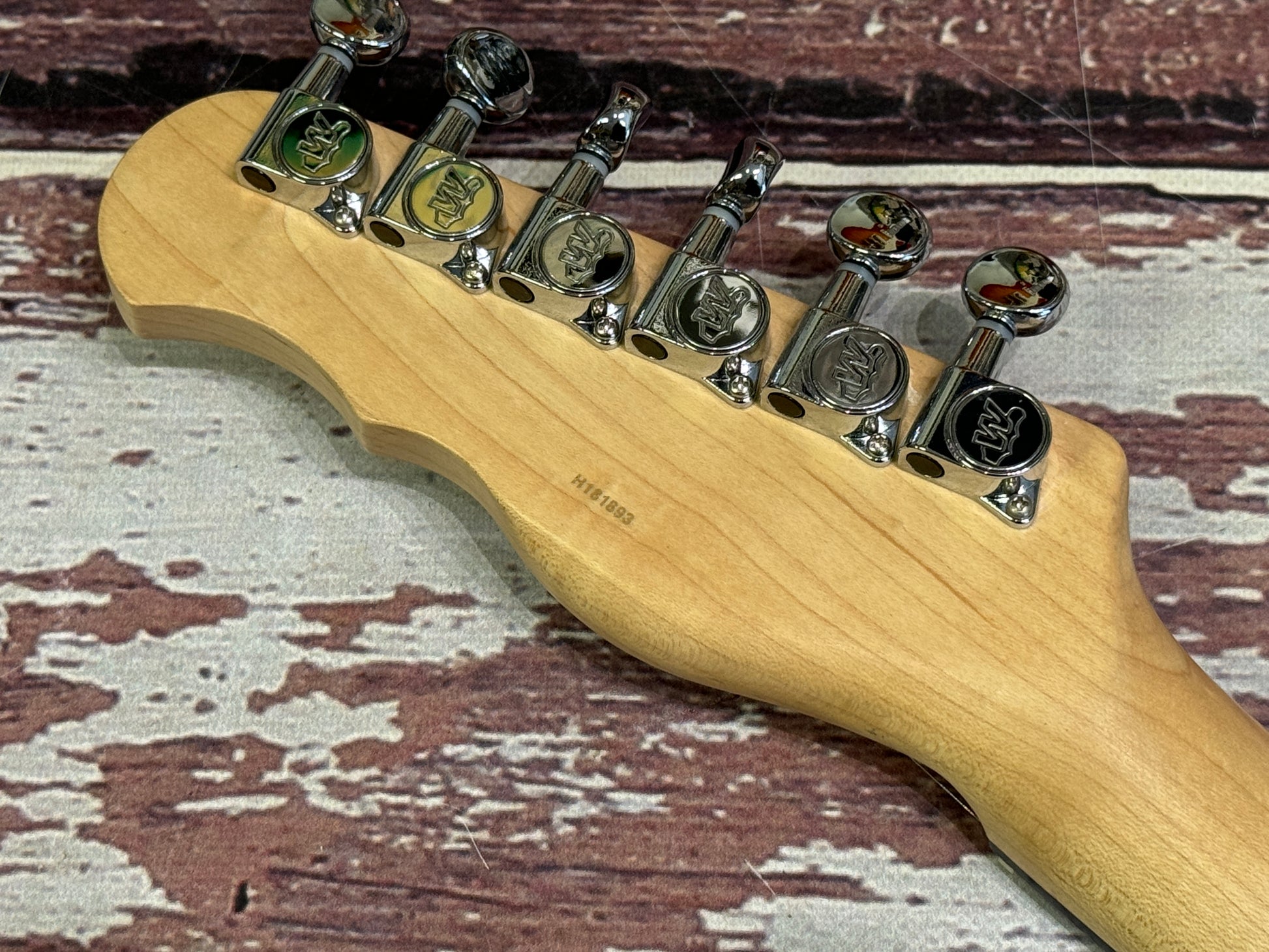 Being a Trev Wilkinson design you also get compensated saddles on the vintage style bridge for more accurate intonation, plus the humbucker to single coil roll off pot, staked on the tone.